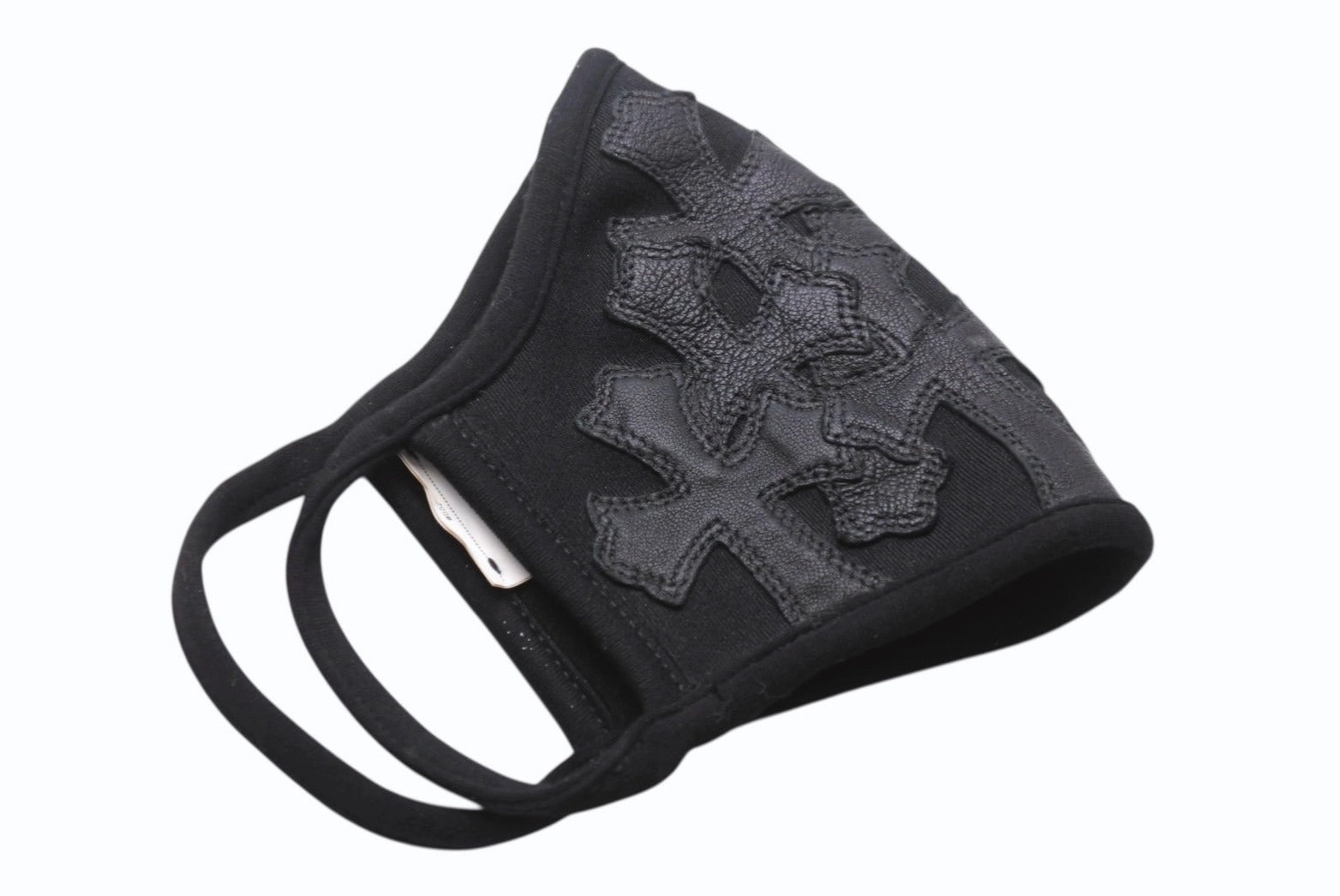 CHROME HEARTS 廃盤 クロムハーツ マスク セメタリークロス ブラック コットン レザー 美品 中古 4b004271