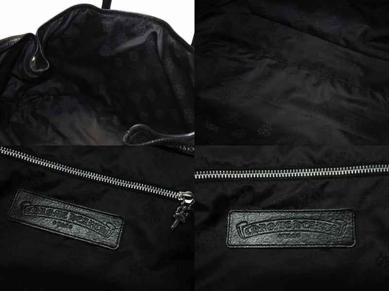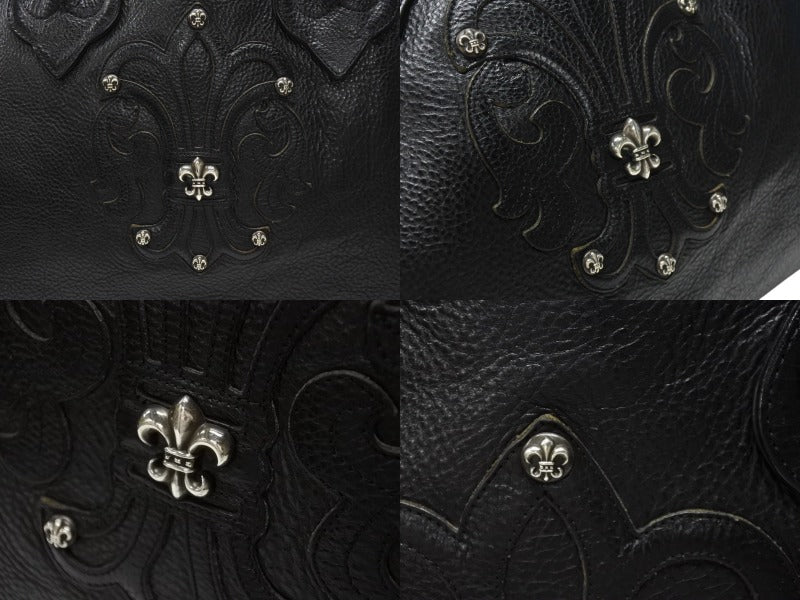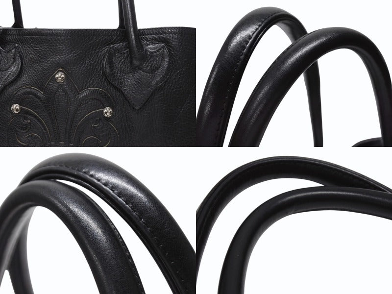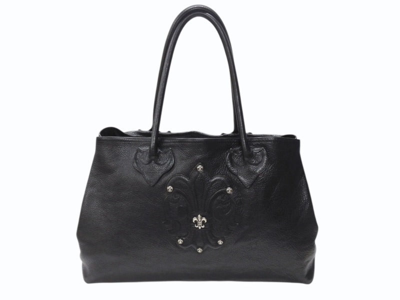 CHROME HEARTS クロムハーツ TOTE W SNP BS FLUER スナップ トートバッグ BSフレアパッチ レザー シルバー925 ブラック 美品 中古 4b004584