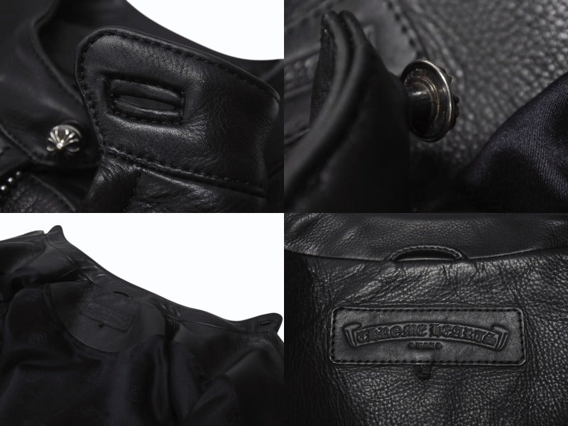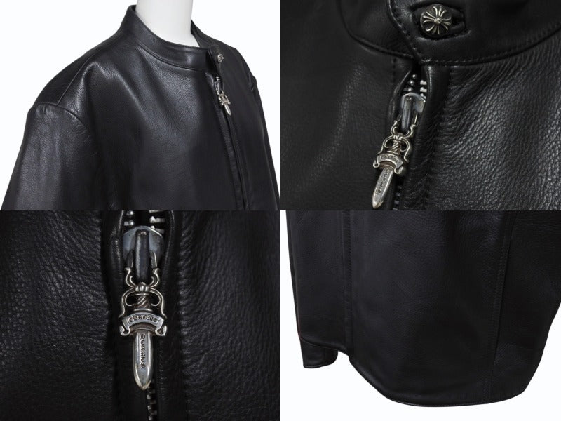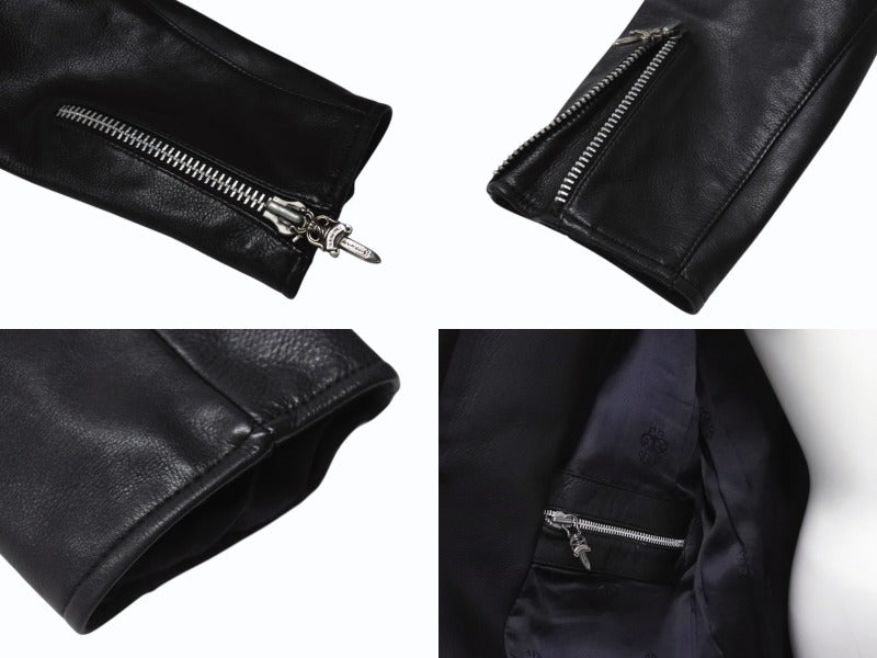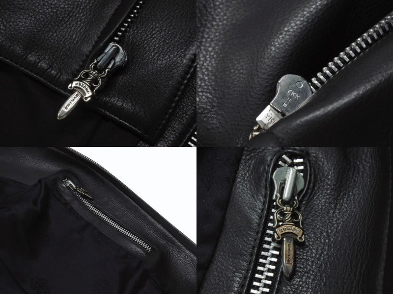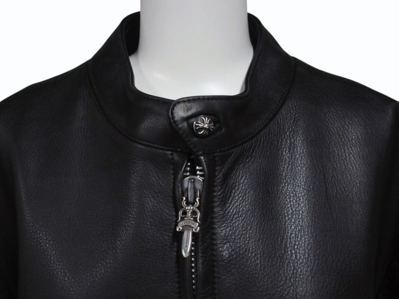 極美品 CHROME HEARTS クロムハーツ RACING 2 レーシング2 シングルライダースジャケット サイズL ダガージップ ブラック 中古 4b004601