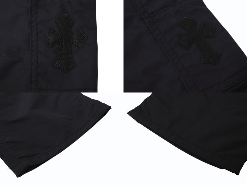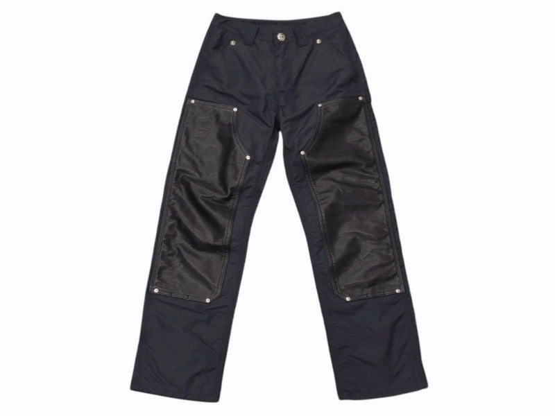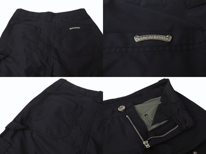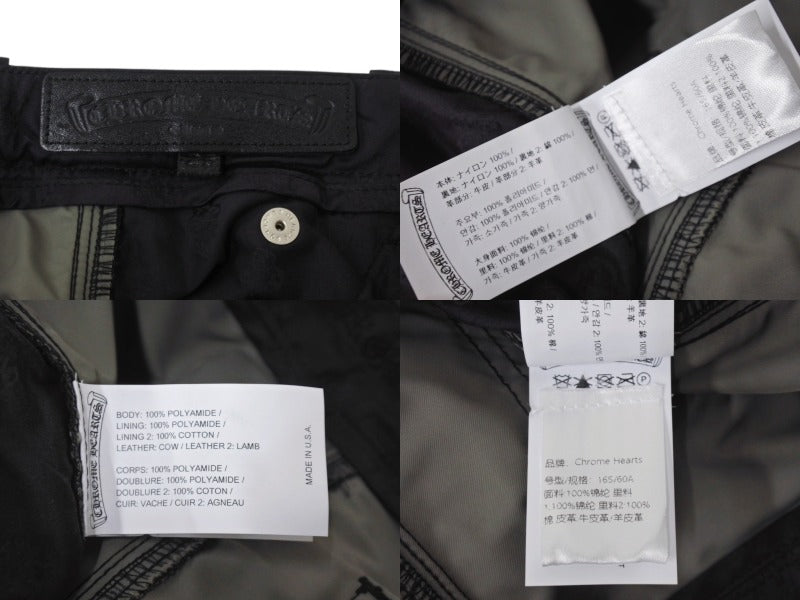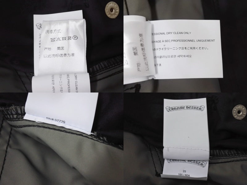 極美品 CHROME HEARTS クロムハーツ ダブルニーパンツ サイズ25 CHクロスレザーパッチ シルバー925 ブラック 中古 4b004761