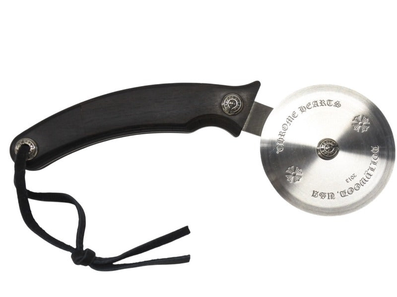 極美品 CHROME HEARTS クロムハーツ PIZZA CUTTER ピザカッター CHプラス ホースシュー エボニーウッド シルバー925 中古 4b004805