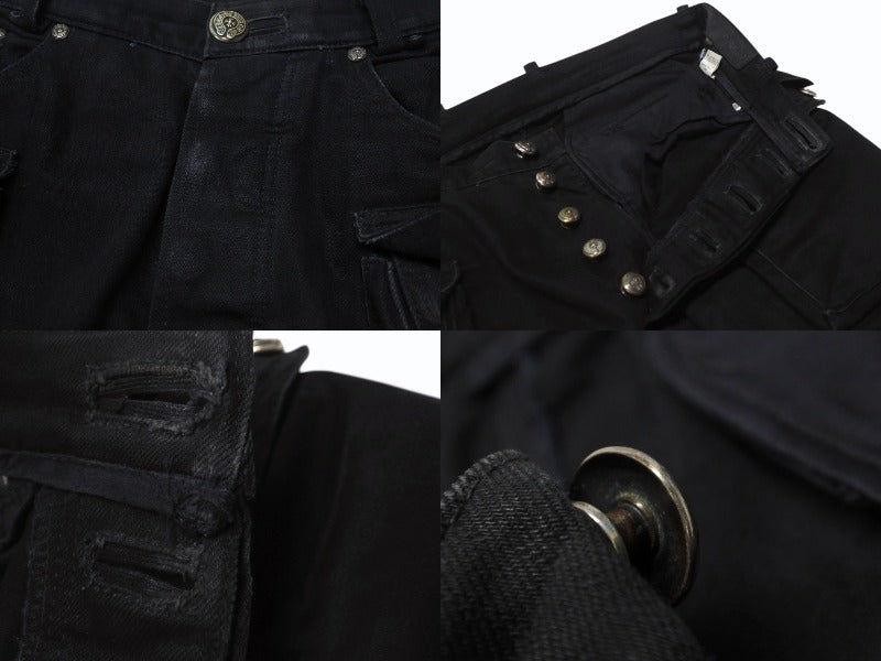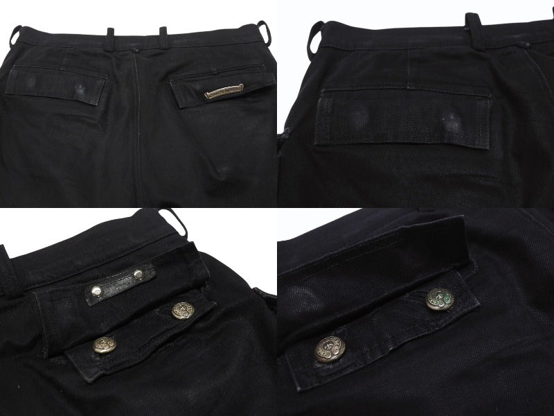 両面上部、裾付近スレあり。裾部分破れ、毛羽立ちあり。カーゴポケット部分生地反り跡あり。シルバー部分変色あり。