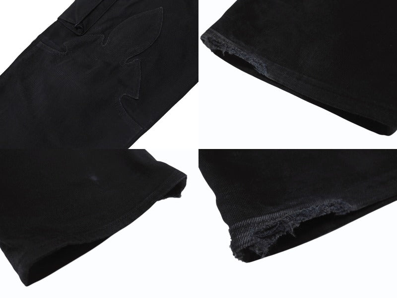 二段のカーゴポケットにクロスボタン、膝部分にはフレアニーのデザインが用いられ特別感のあるデザインです。