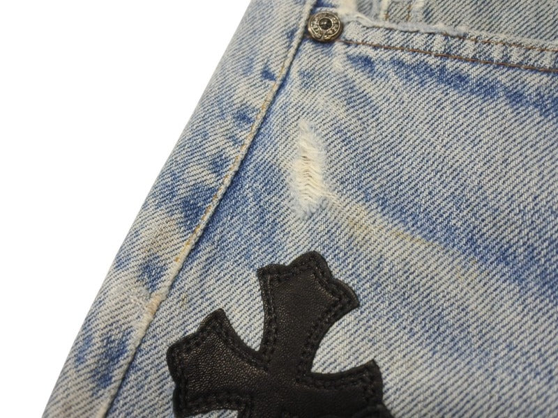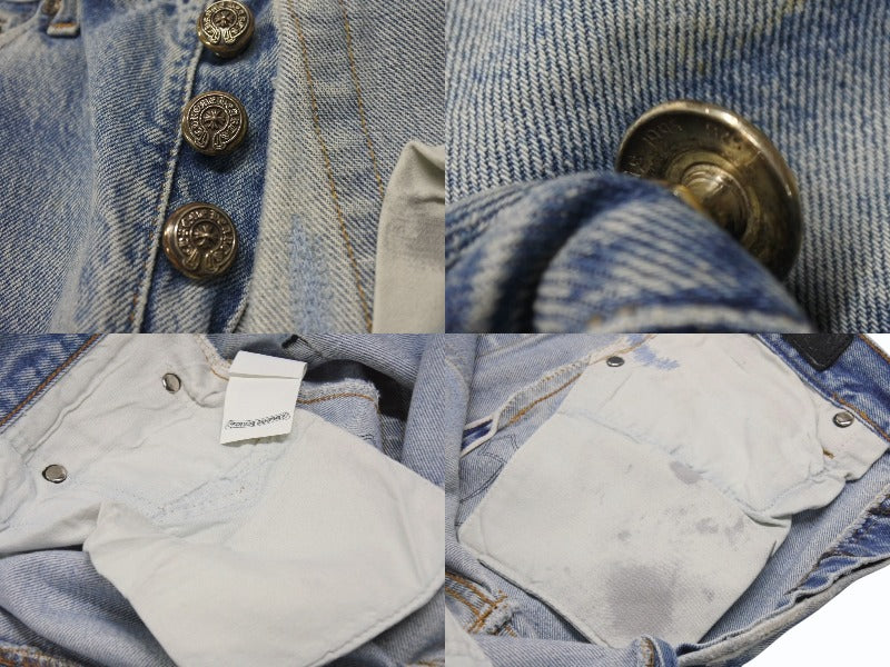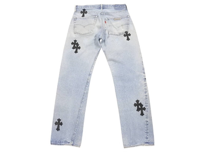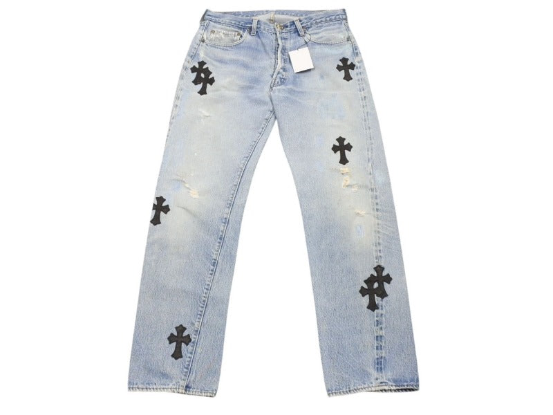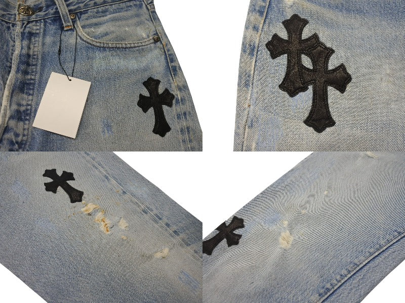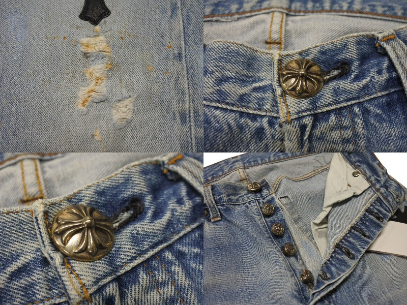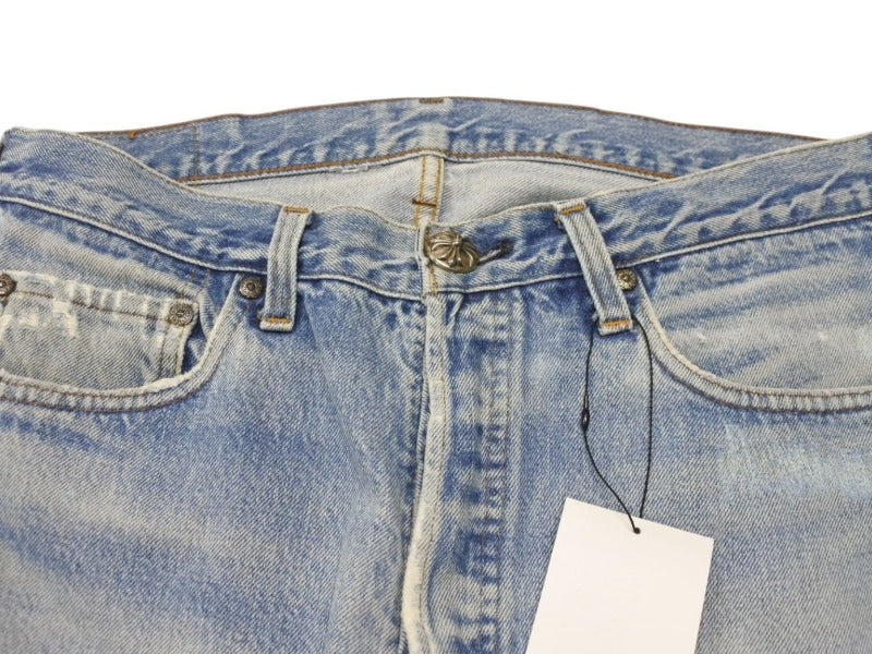 新品未使用 CHROME HEARTS クロムハーツ クロスパッチ デニム パンツ リーバイス LEVI`S 501 オーダー サイズ31 ブルー 中古 4b005058