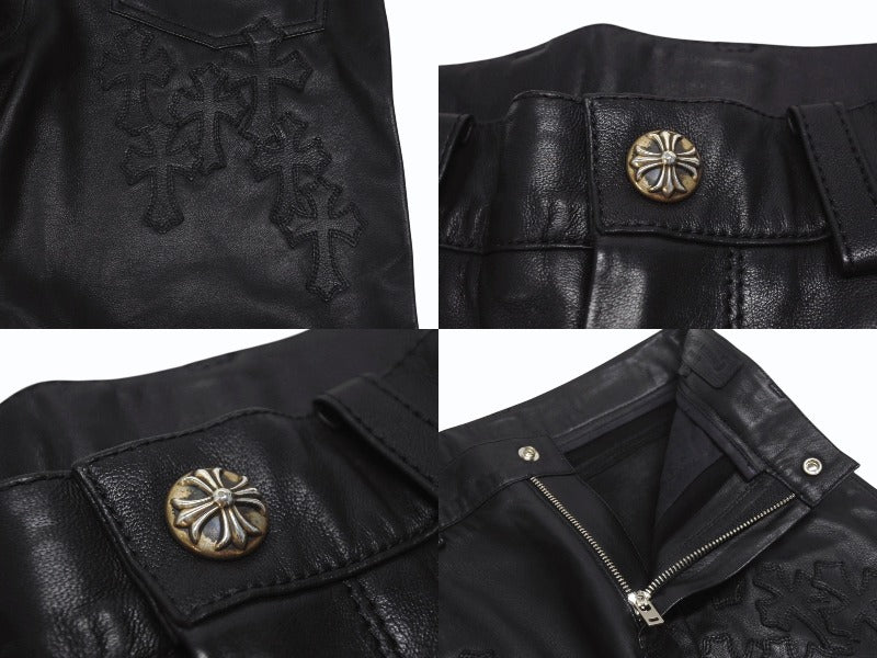 説明クロムハーツ キッズ フレアニーレザーパンツです。