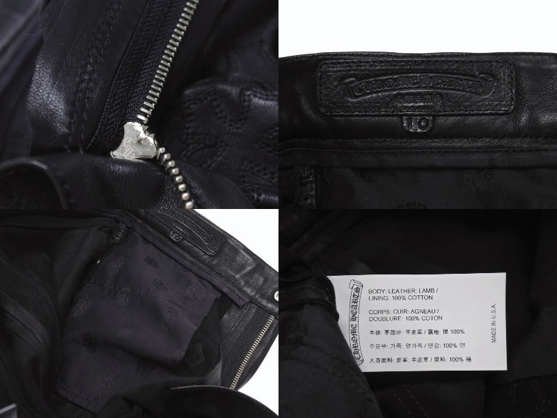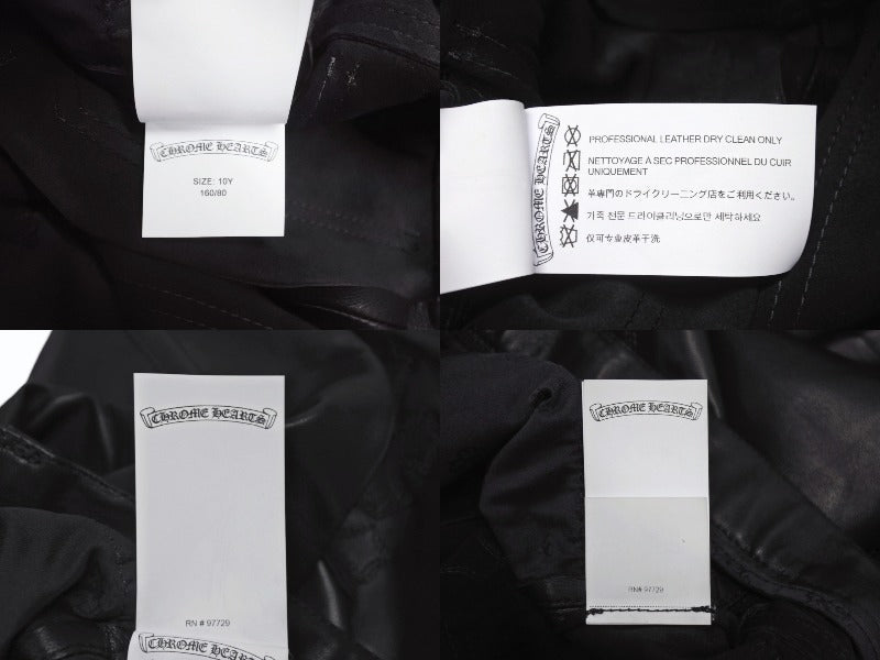 新品未使用 CHROME HEARTS クロムハーツ キッズ フレアニーレザーパンツ サイズ10Y セメタリークロスパッチ ブラック 中古 4b005240