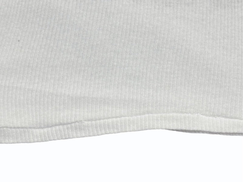毛羽立ちあり。プリントにクラックあり。脇部分、首元内側に少々薄じみあり。裾部分にねじれ、ほつれあり。その他使用感少なく極美品です。