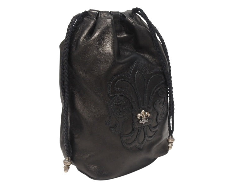新品未使用 新型 25年 CHROME HEARTS クロムハーツ BSフレア ドローストリングス バッグ 巾着 シルバー 黒 中古 4b005722