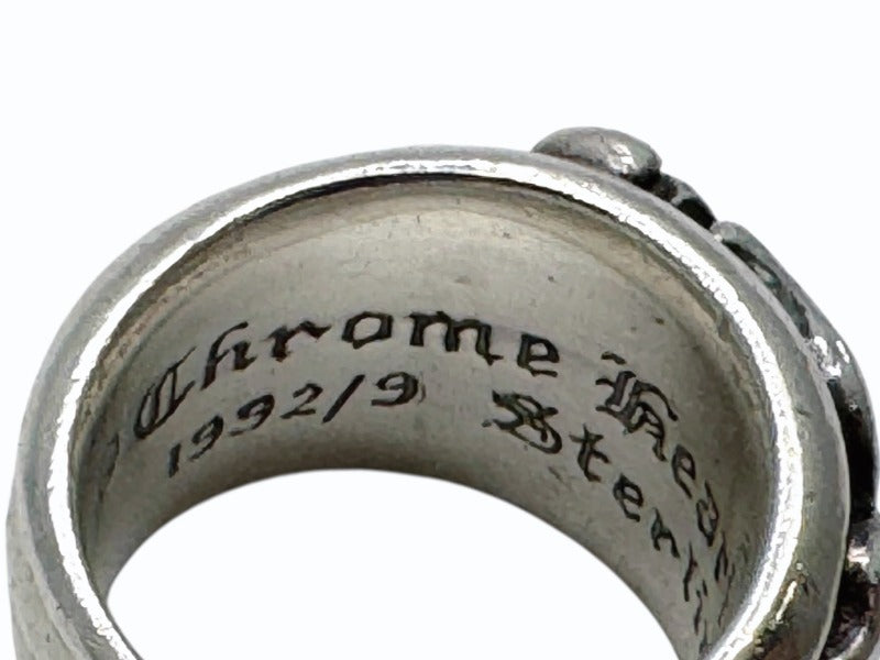 表面のリングの円に沿うようにクロムハーツの人気モチーフ、ダガーが堂々とデザインされているリングになります。クロムハーツらしい幅の広いサイズ感と重厚感でとても魅力的なアイテムです。