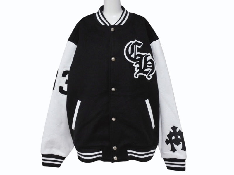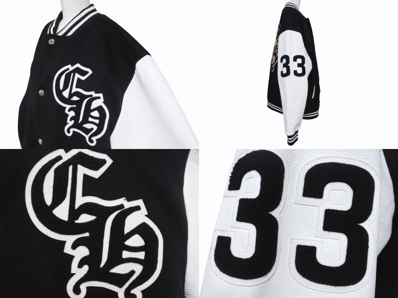 新品未使用 CHROME HEARTS クロムハーツ ヴァーシティジャケット スタジャン サイズXXL セメタリークロスパッチ ホースシュー 中古 4b004051