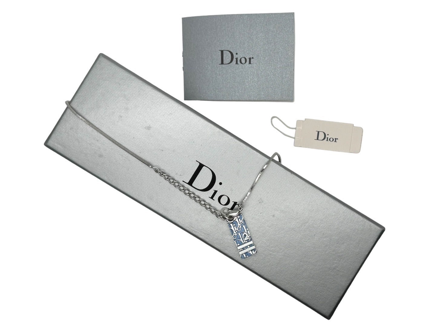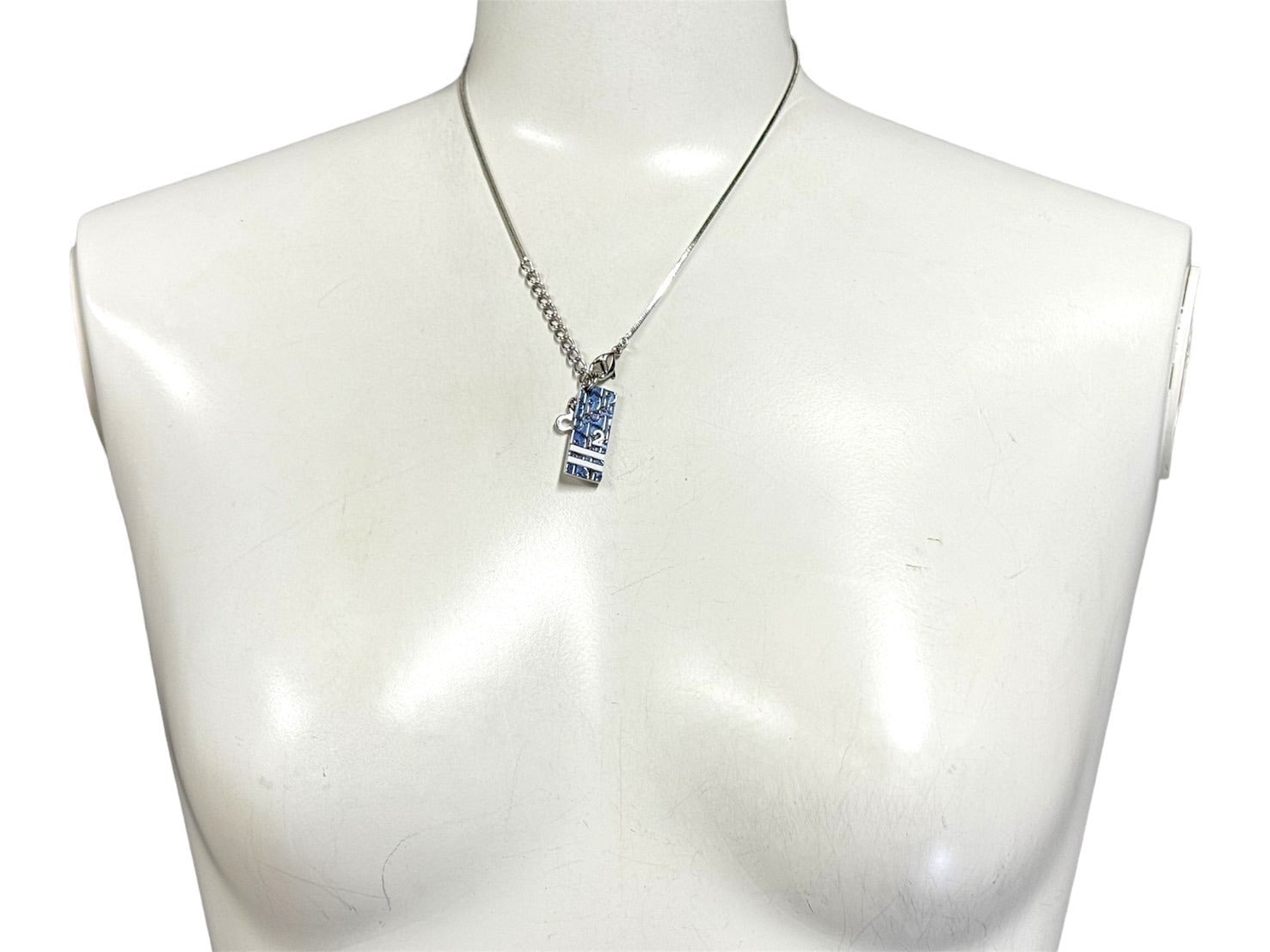 極美品 Christian Dior クリスチャンディオール トロッター プレート ネックレス ブルー メタル シルバー金具 10.8g ロゴ アクセサリー ジュエリー 中古 4c067547