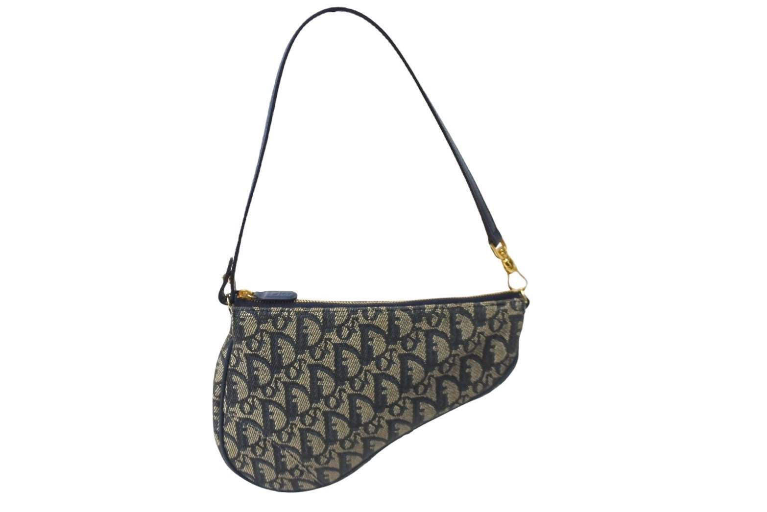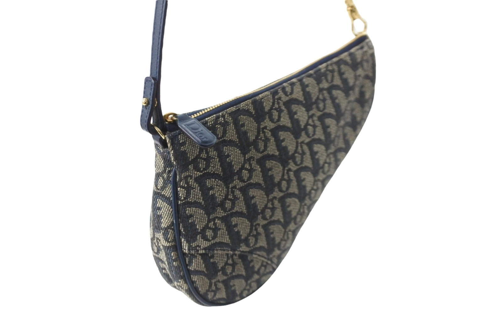 Christian Dior クリスチャンディオール トロッター サドル ポーチ ネイビー ロゴ ハンドバッグ 鞄 総柄 MC0071 美品 中古 56711