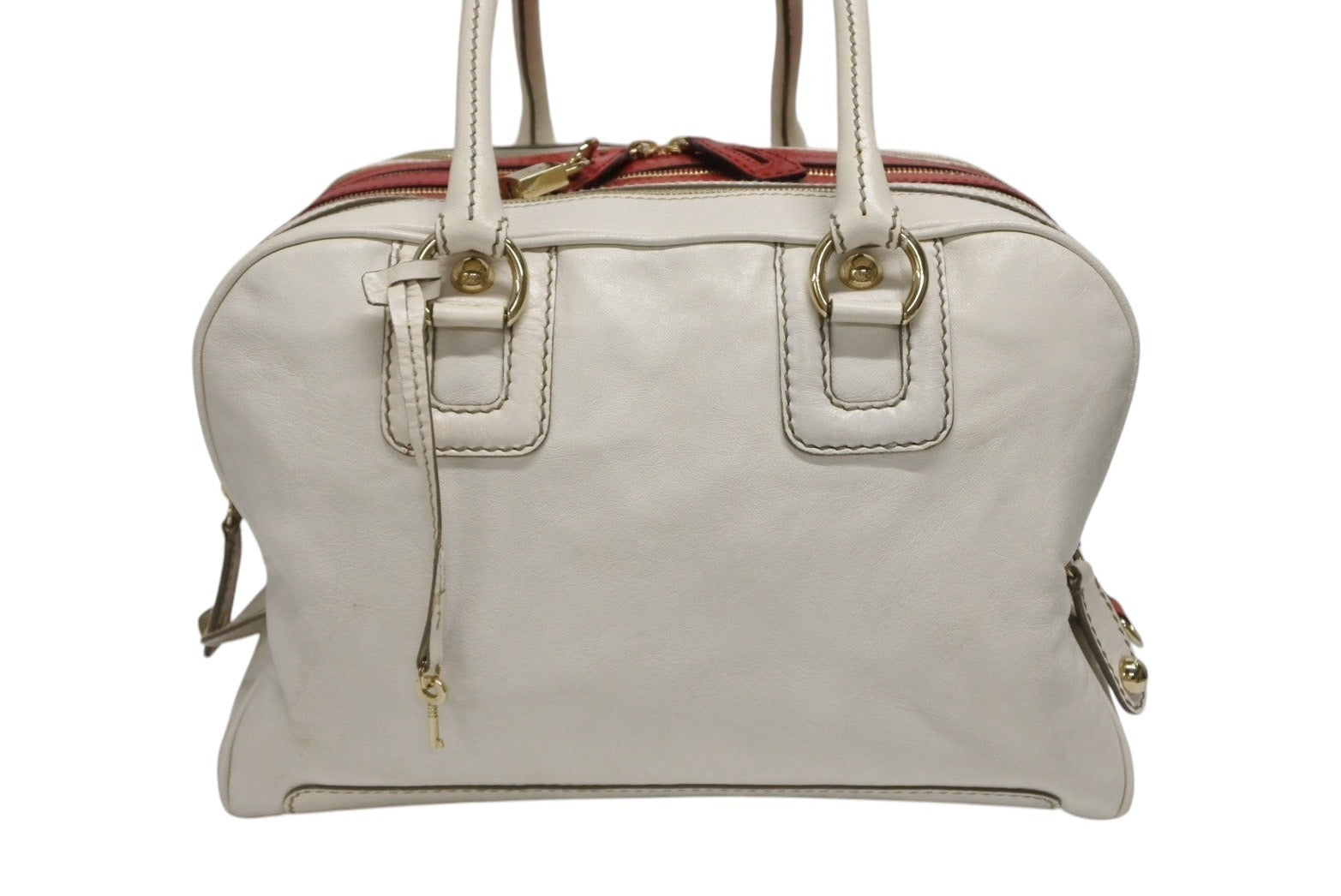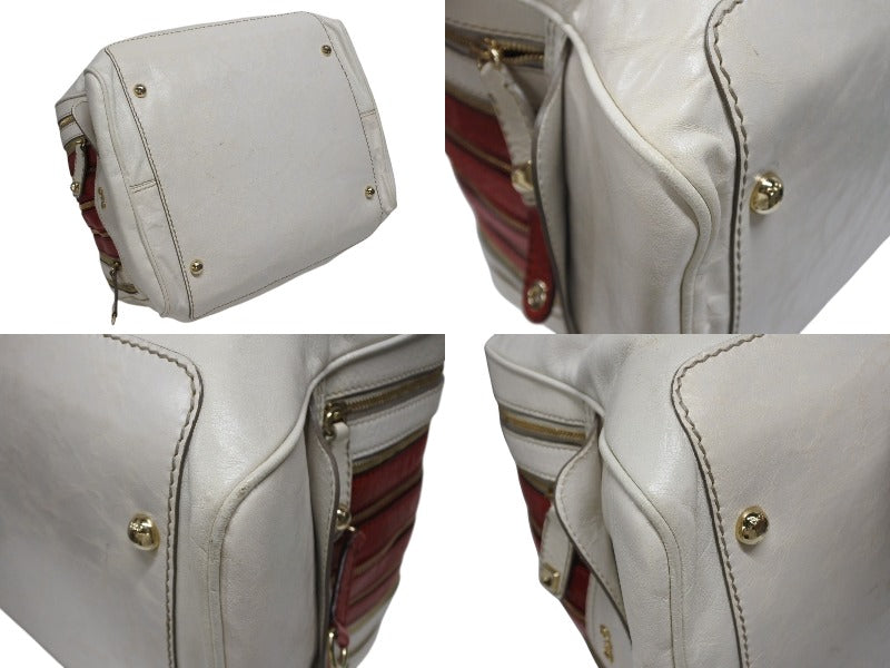DOLCE&GABBANA ドルチェ&ガッバーナ ハンドバッグ トートバッグ BAG LILY ホワイト レッド レザー 美品 中古 4b007783