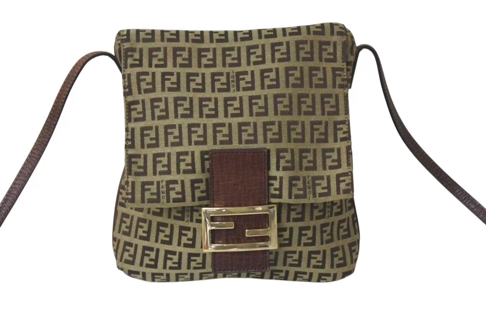 FENDI フェンディ ズッキーノ ショルダーバッグ ブラウン ベージュ キャンバス ゴールド金具 良品 中古 4b000127