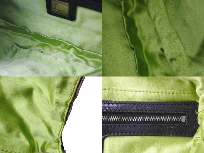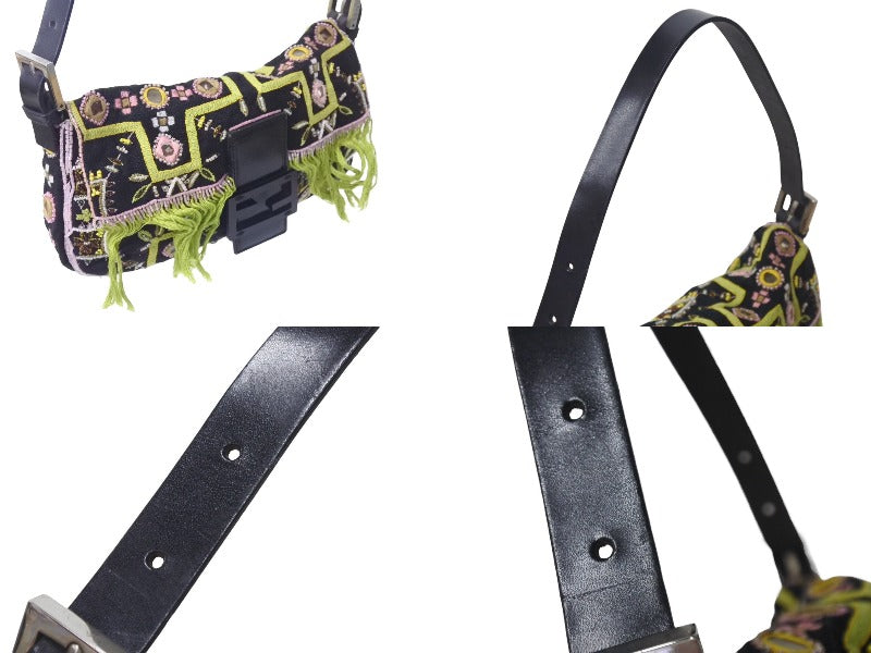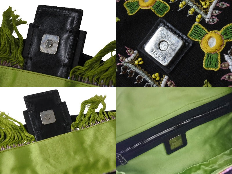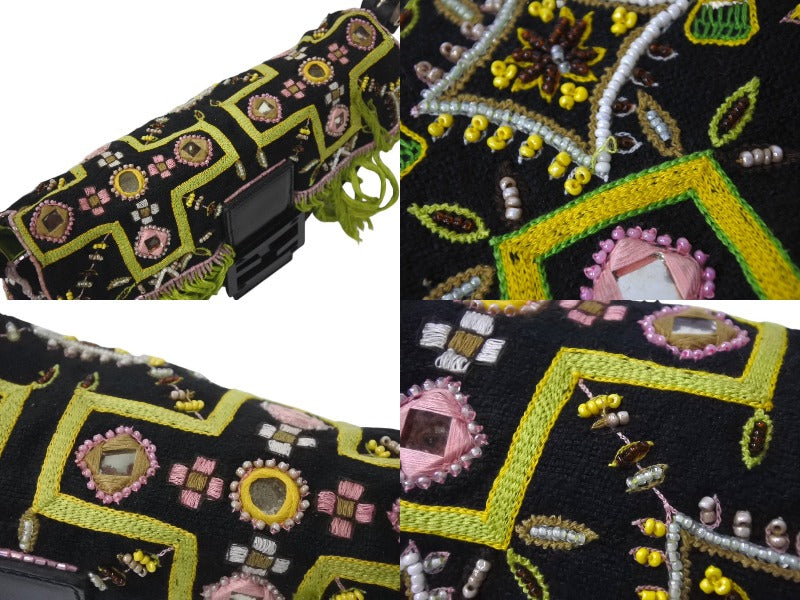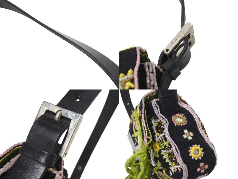 FENDI フェンディ ビーズ刺繍 マンマバケット ハンドバッグ ブラック マルチカラー キャンバス ビーズ レザー ワンショルダー 26424 美品 中古 4b000285
