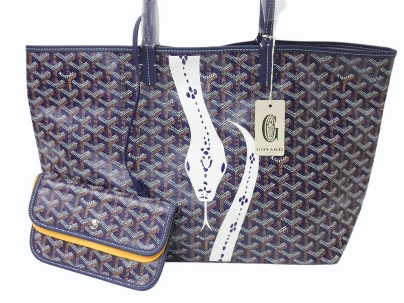 新品未使用 GOYARD ゴヤール サンルイPM バッグ トートバッグ STLOUIPMLTY12CL12P マーカージュアート スネーク 蛇 ネイビー 中古 4b003302