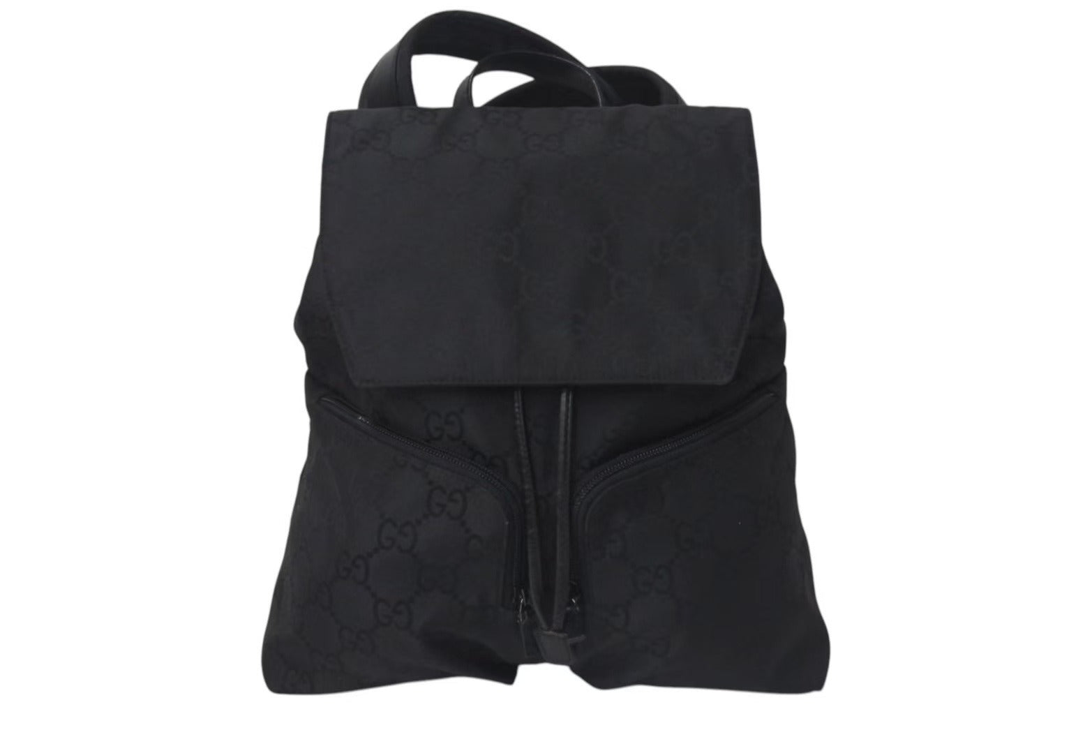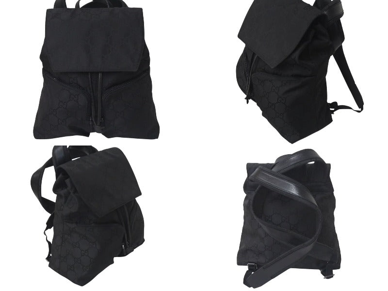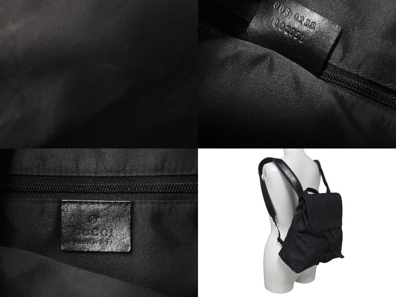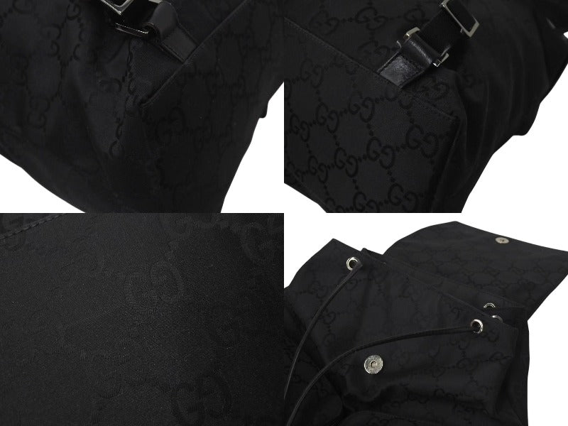 GUCCI グッチ GG柄 リュック バックパック デイバッグ イタリア製 002058 GGナイロン レザー ブラック 美品 中古 4c073656