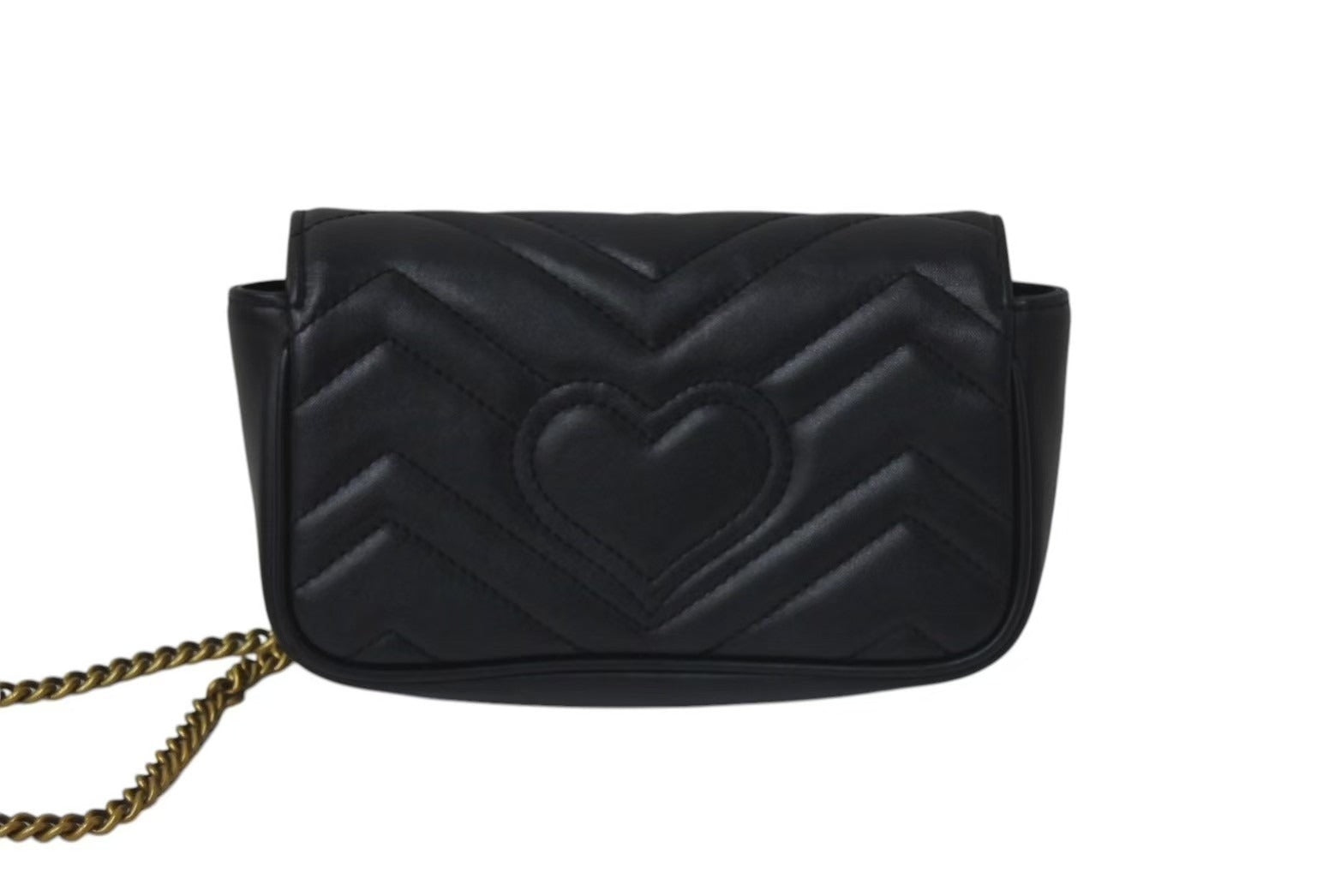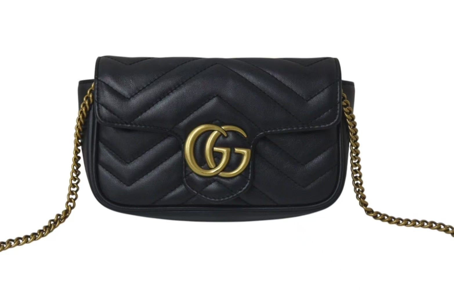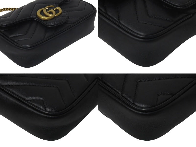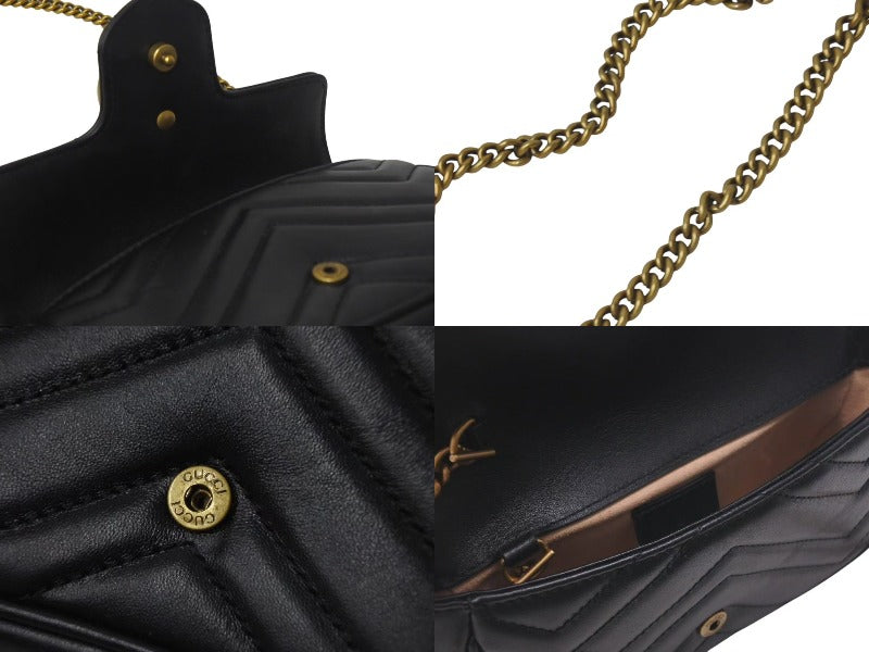 GUCCI グッチ GGマーモント ショルダーバッグ ミニバッグ 476433 レザー ブラック アンティークゴールド金具 美品 中古 4c074102