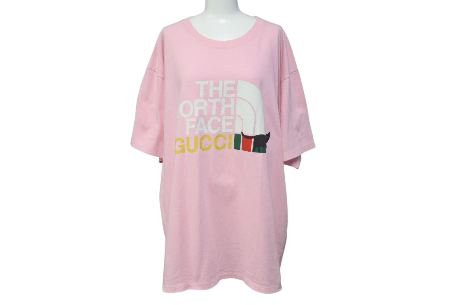 GUCCI グッチ THE NORTH FACE ザノースフェイス 半袖Tシャツ イタリア製 コットン ピンク サイズXL 美品 中古 4c074673