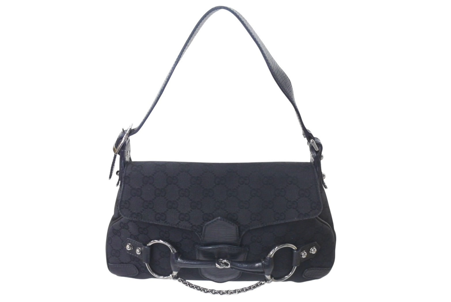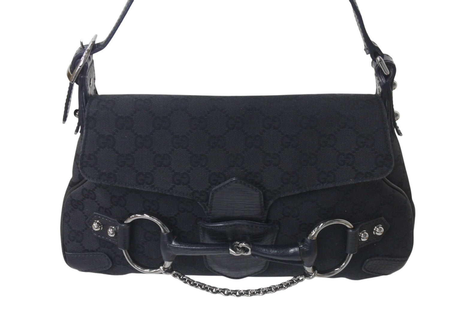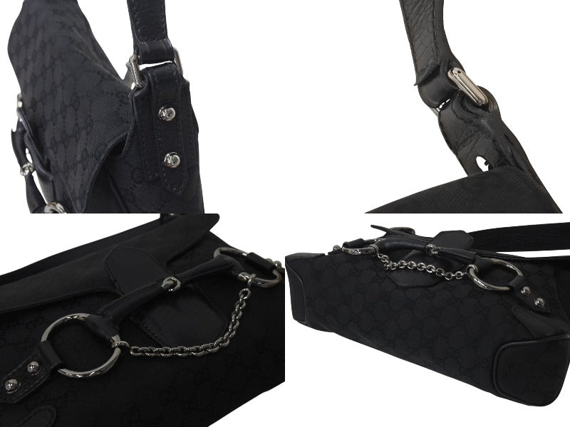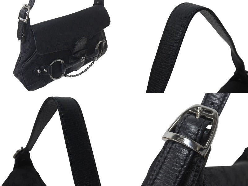 GUCCI グッチ ホースビット ワンショルダーバッグ 114915 001364 GGキャンバス レザー ブラック シルバー金具 美品 中古 4c076291