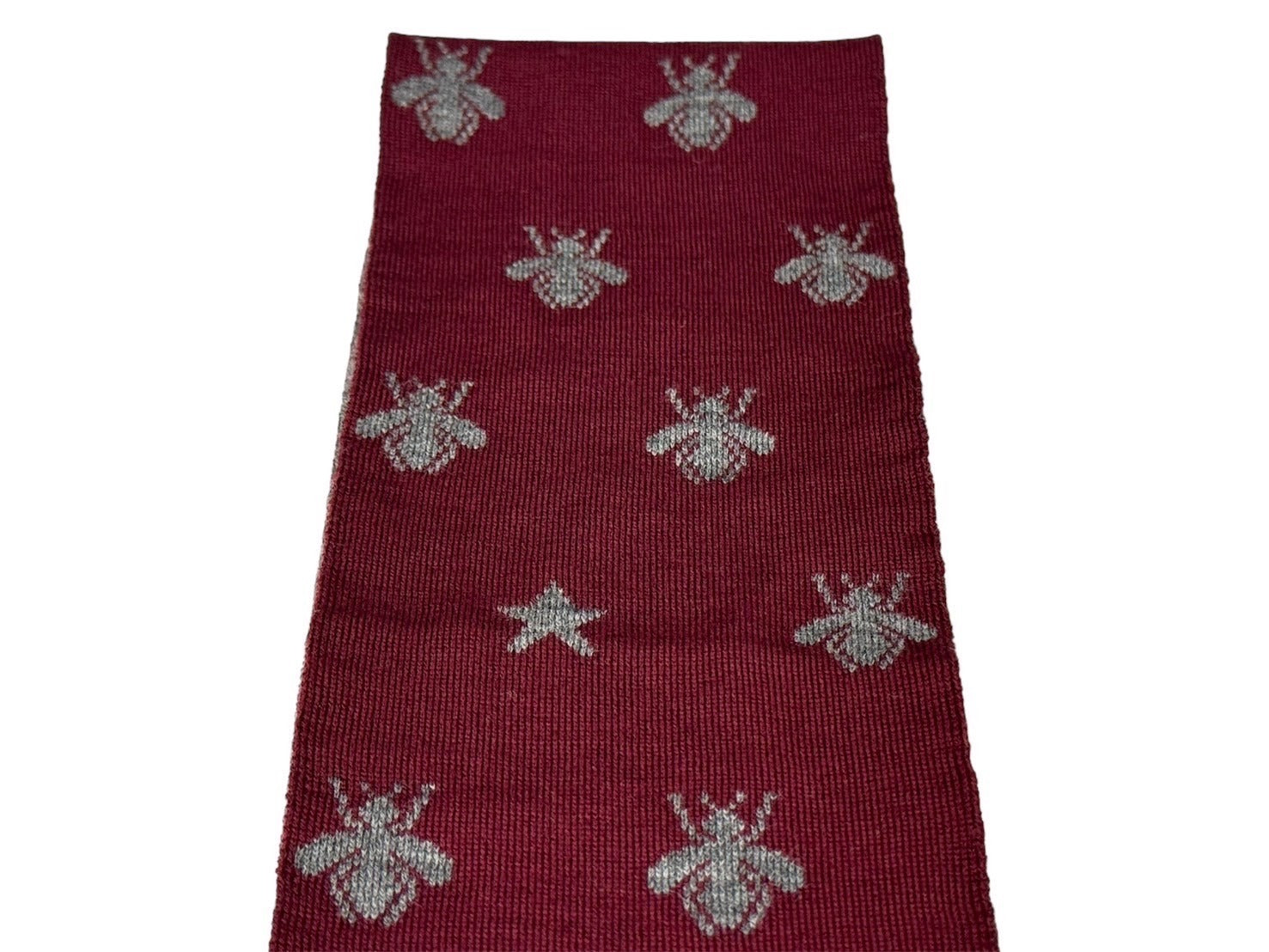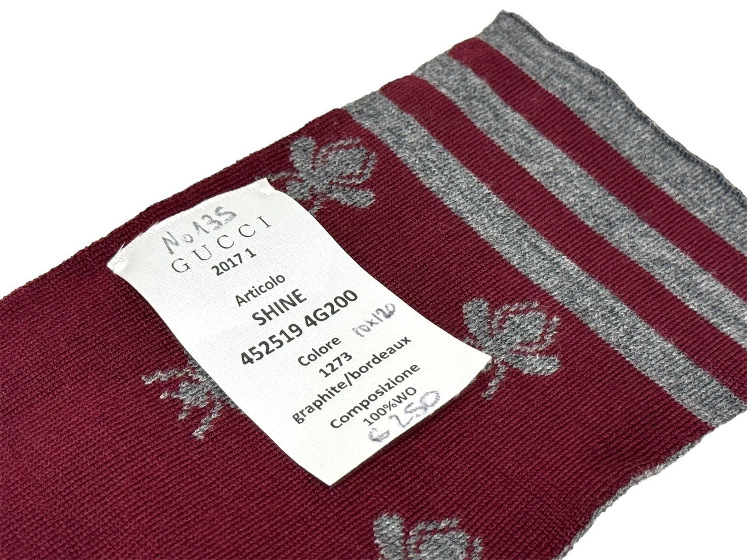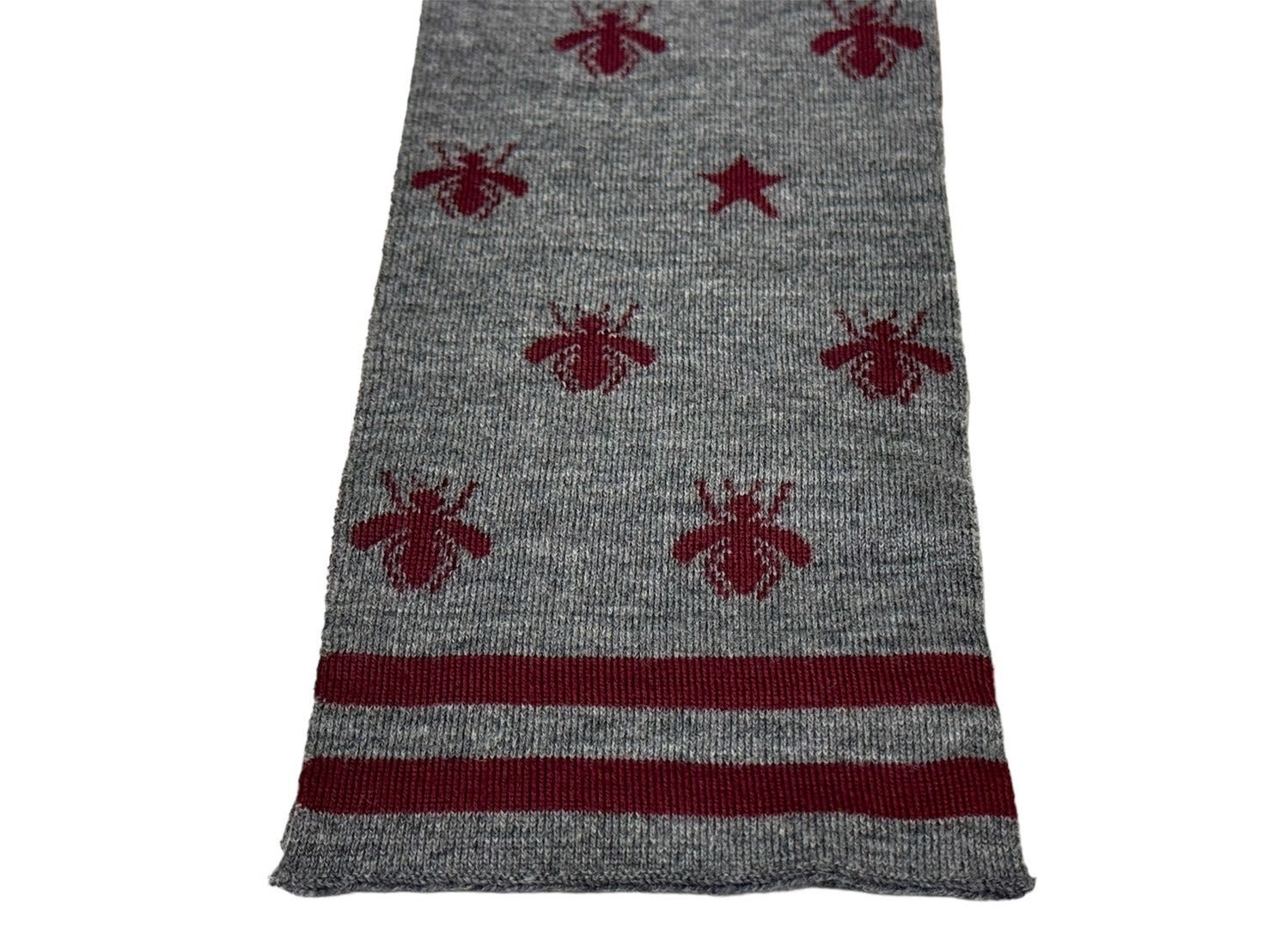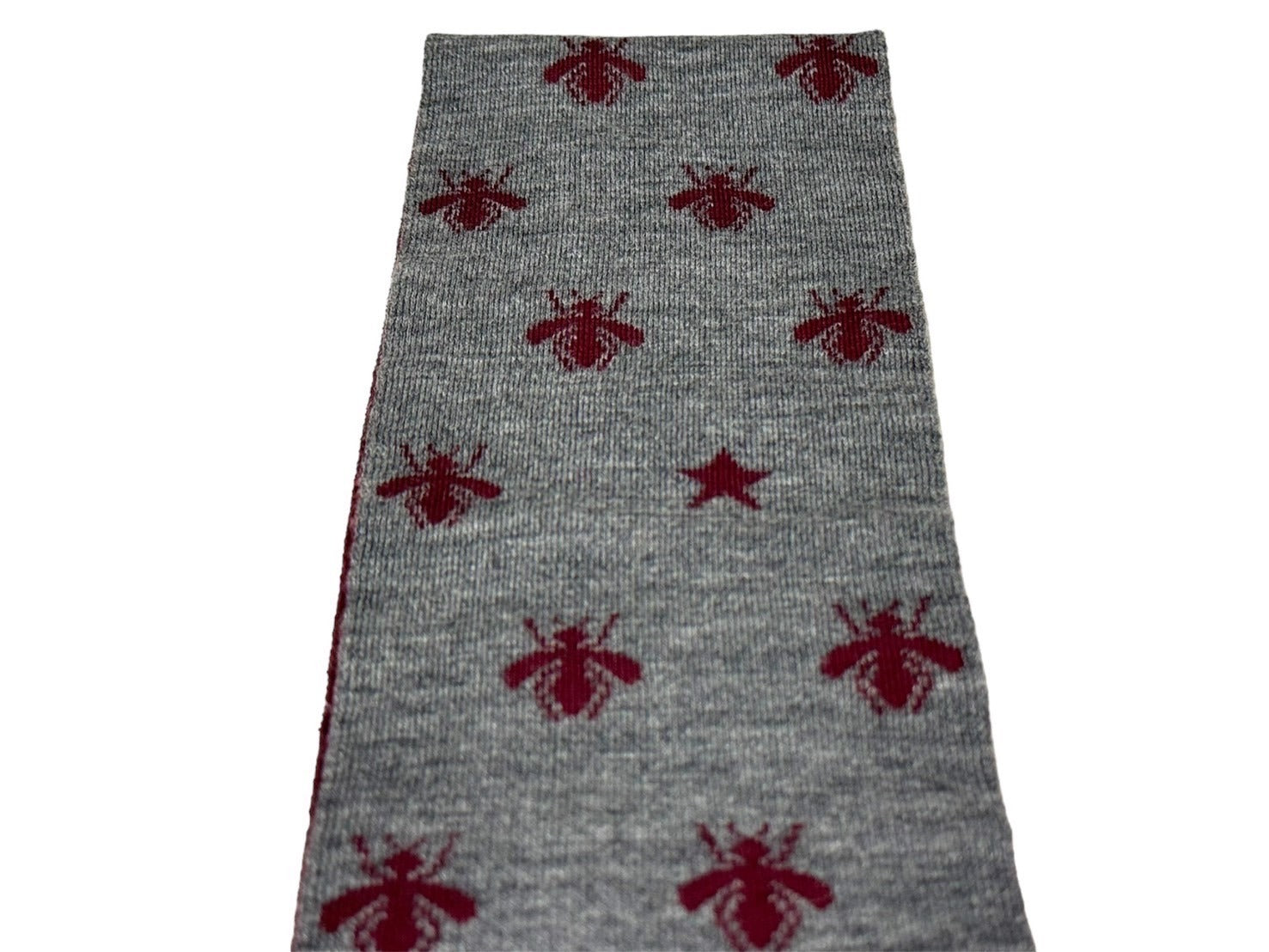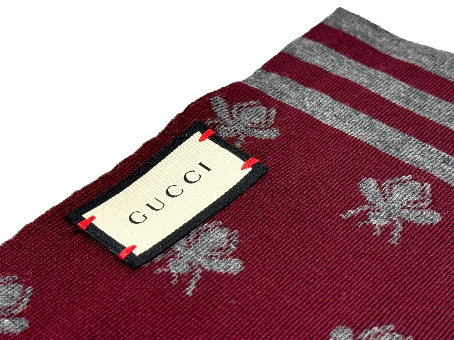 GUCCI グッチ ビー&スター エンブロイダリー ストール スカーフ 18AW ウール グレー レッド 美品 中古 64373