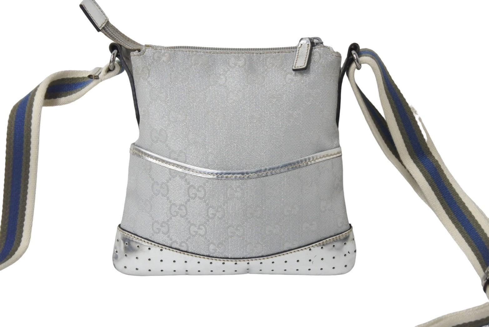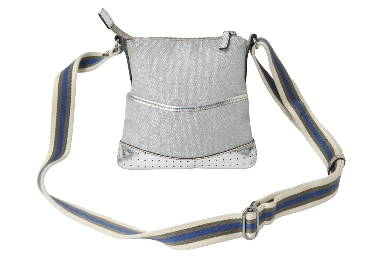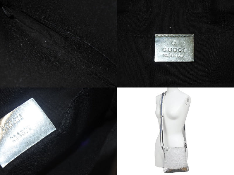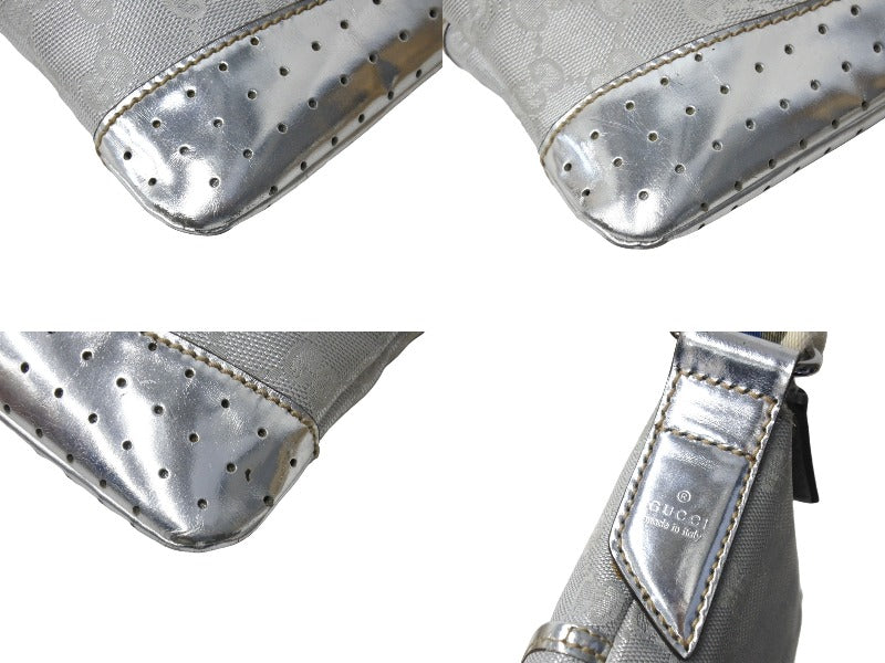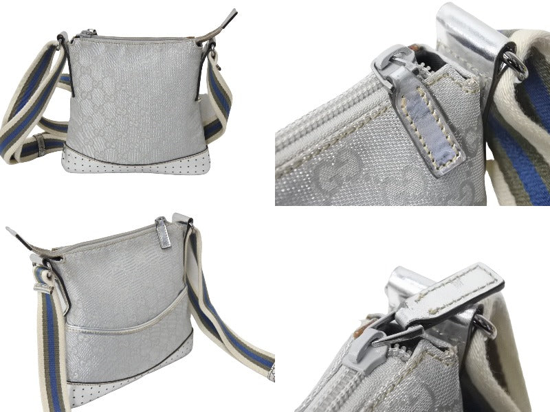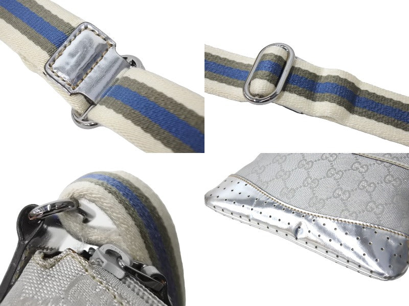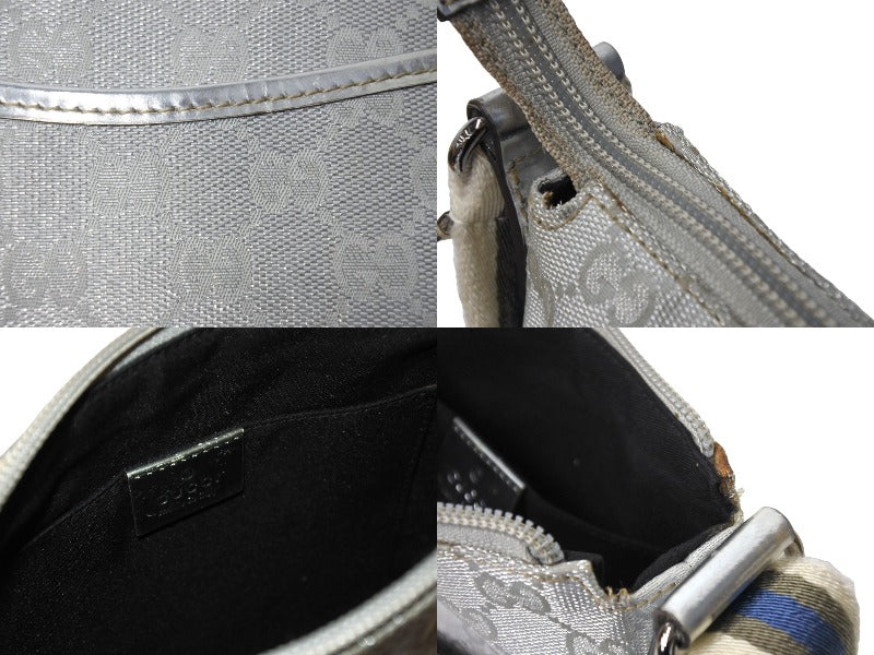 GUCCI グッチ ショルダーバッグ 147671 GGキャンバス レザー シェリーライン シルバー ポシェット クロスボディ 美品 中古 66706