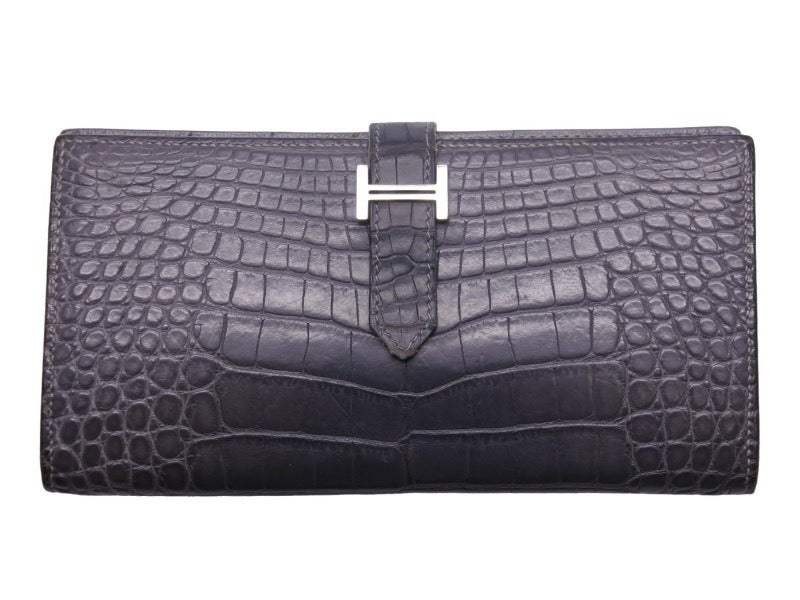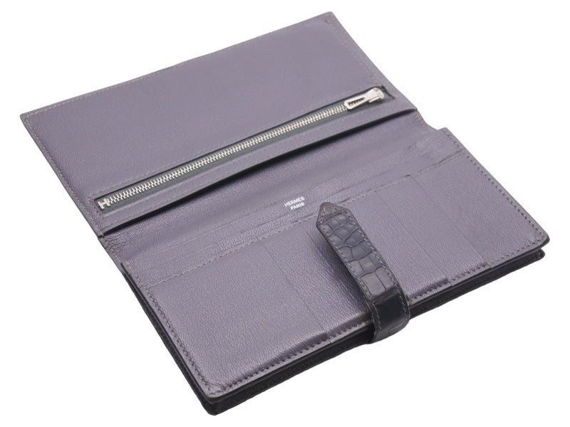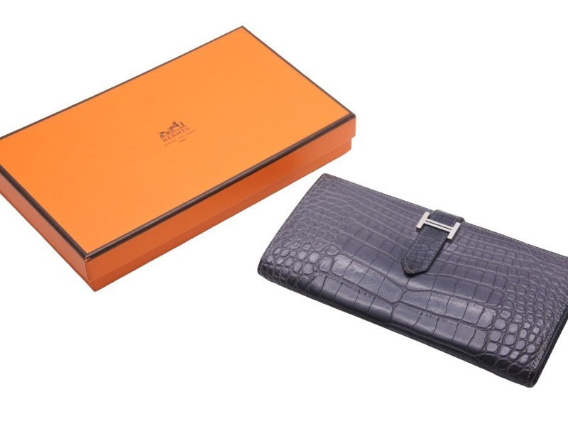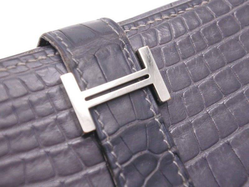 HERMES エルメス ベアン スフレ グレー □Q刻印 シルバー金具 長財布 美品 中古 47108