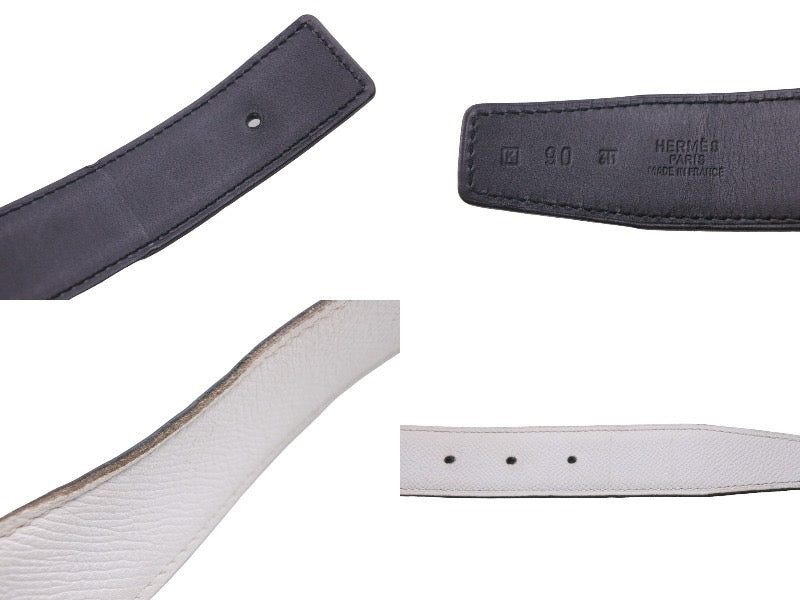 HERMES エルメス ベルト コンスタンス サイズ90 □K刻印 ヴォーエプソン ボックスカーフ ホワイト シールバー金具 美品 中古 49350