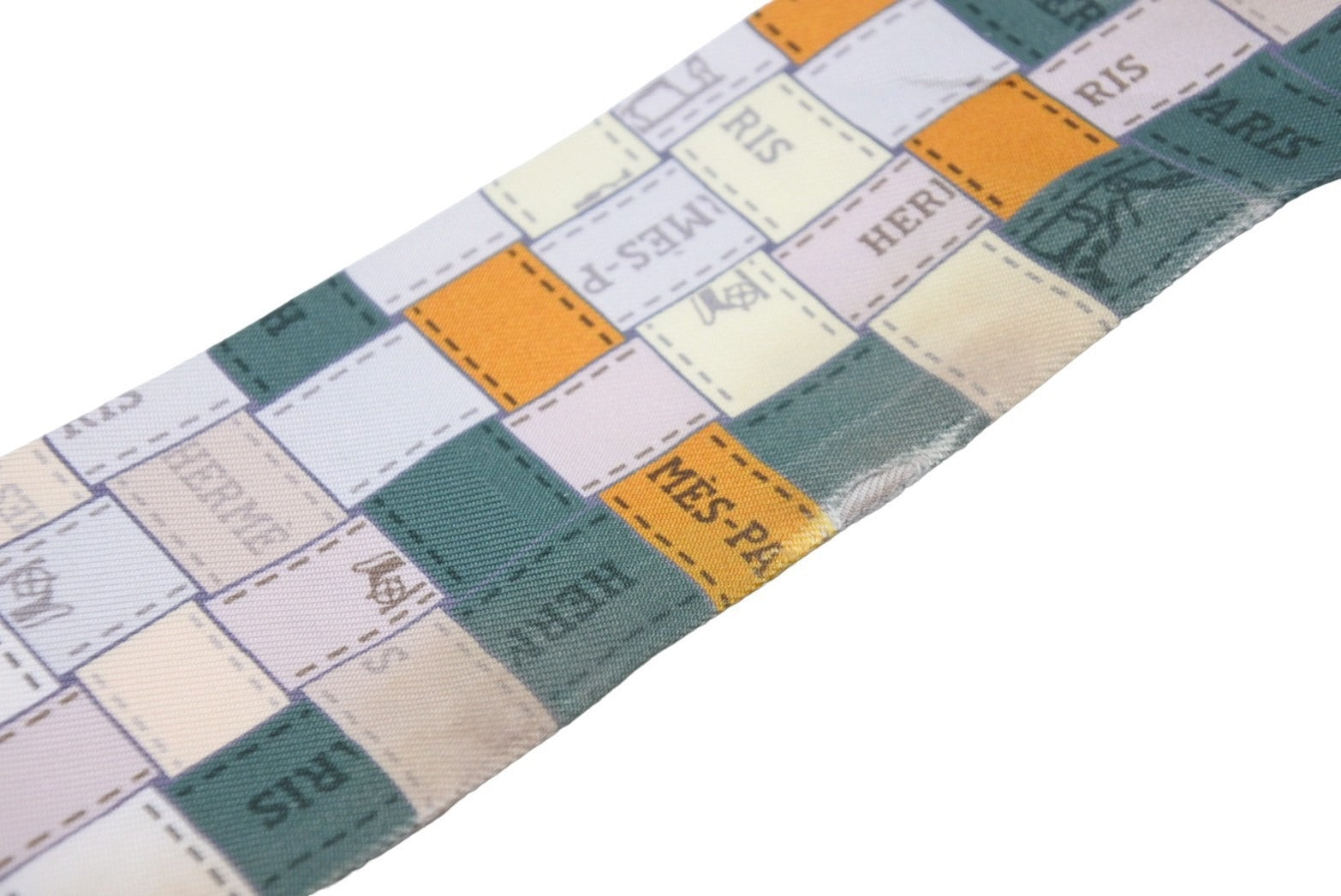 HERMES エルメス ストール ツイリー スカーフ グリーン ホワイト シルク フランス製 良品 中古 49385