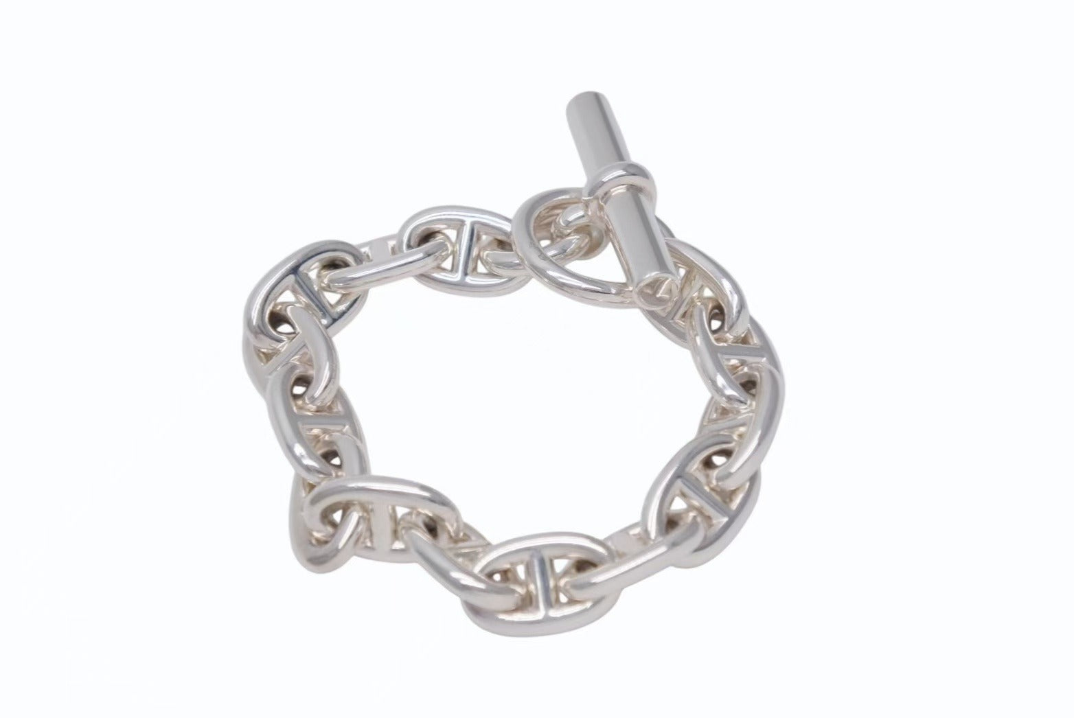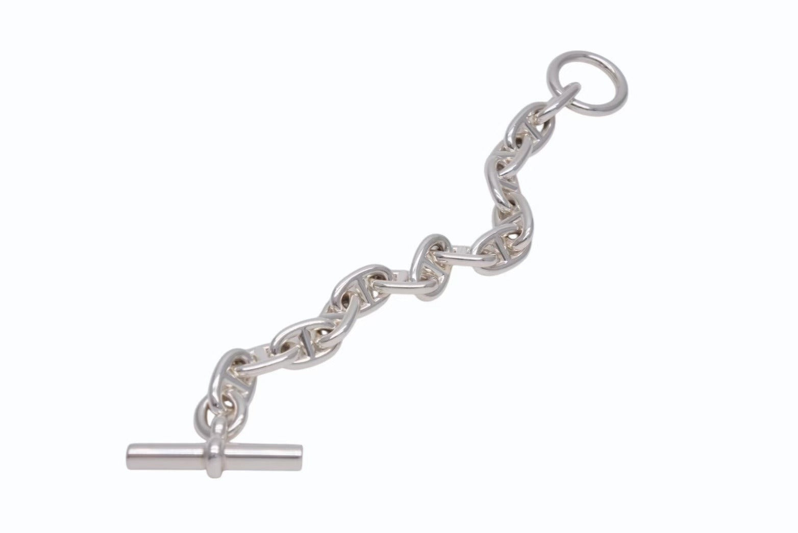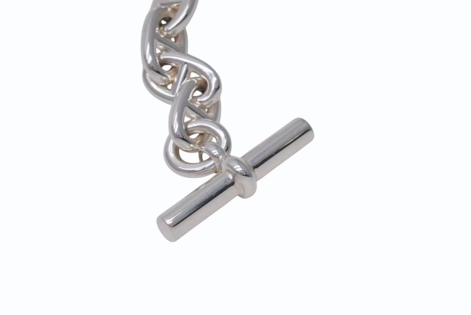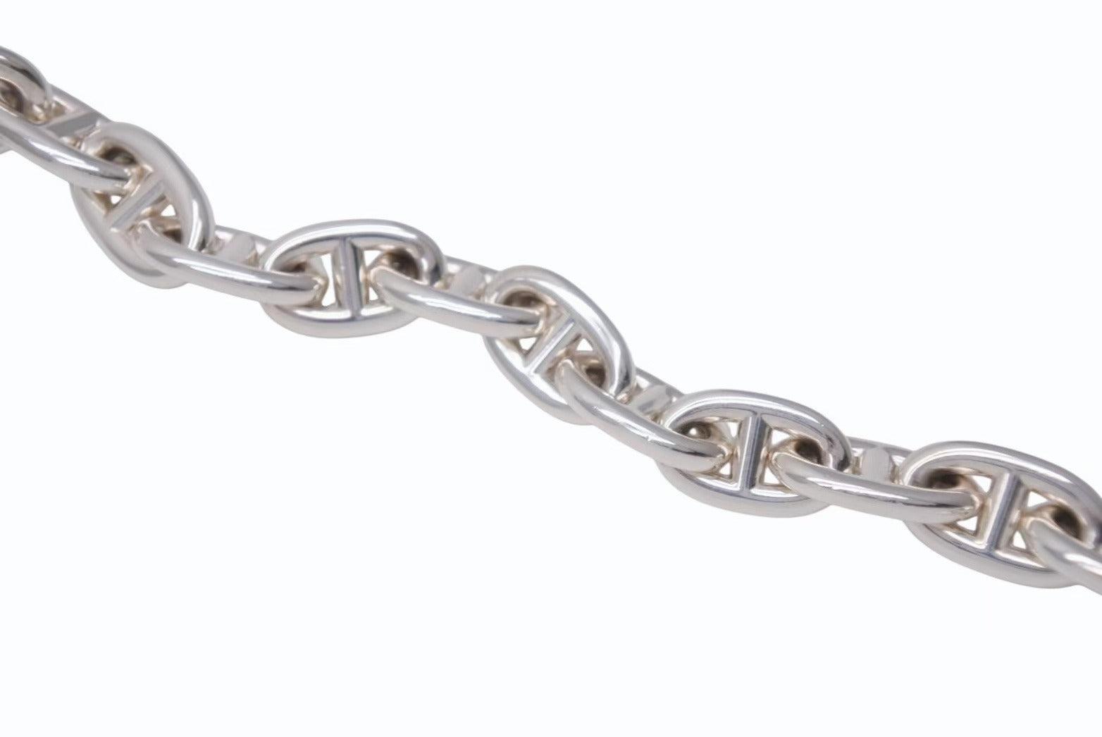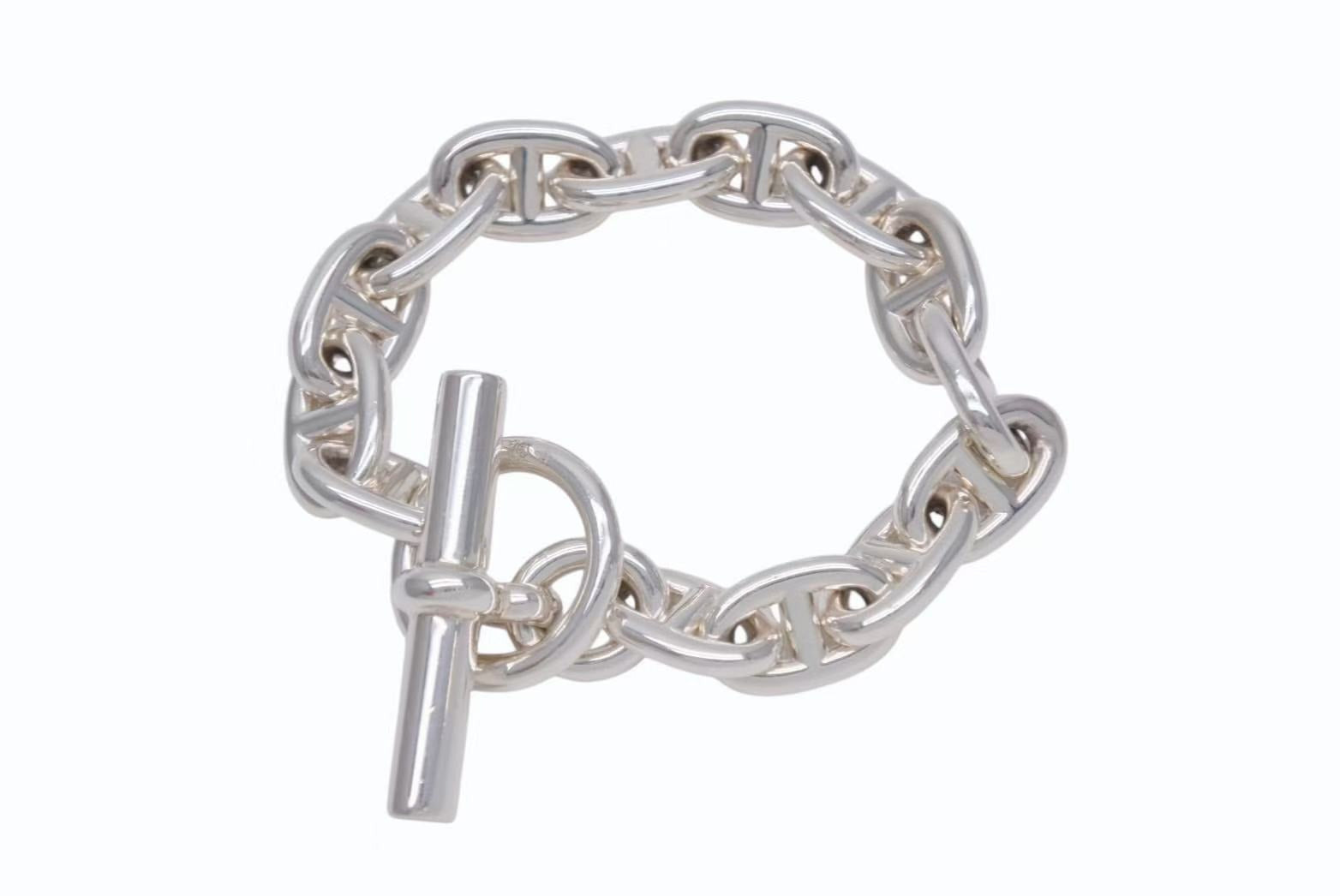 1938年に発表されたエルメスのロングセラー「シェーヌ・ダンクル」。 船の錨のチェーンからインスピレーションを受けて誕生したコレクションで、鎖で強く結ばれた絆を象徴しています。 発表から80年の歳月を経てなお衰え知らずの高い人気を誇っており、バーキン同様エルメスの店頭では購入できないレアなアイテムです。 MMサイズはユニセックスでお使い頂けるサイズ感が魅力。 芸能界でも幅広く愛用されているファッションアイテム、是非ひとつは持っておきたい逸品です。