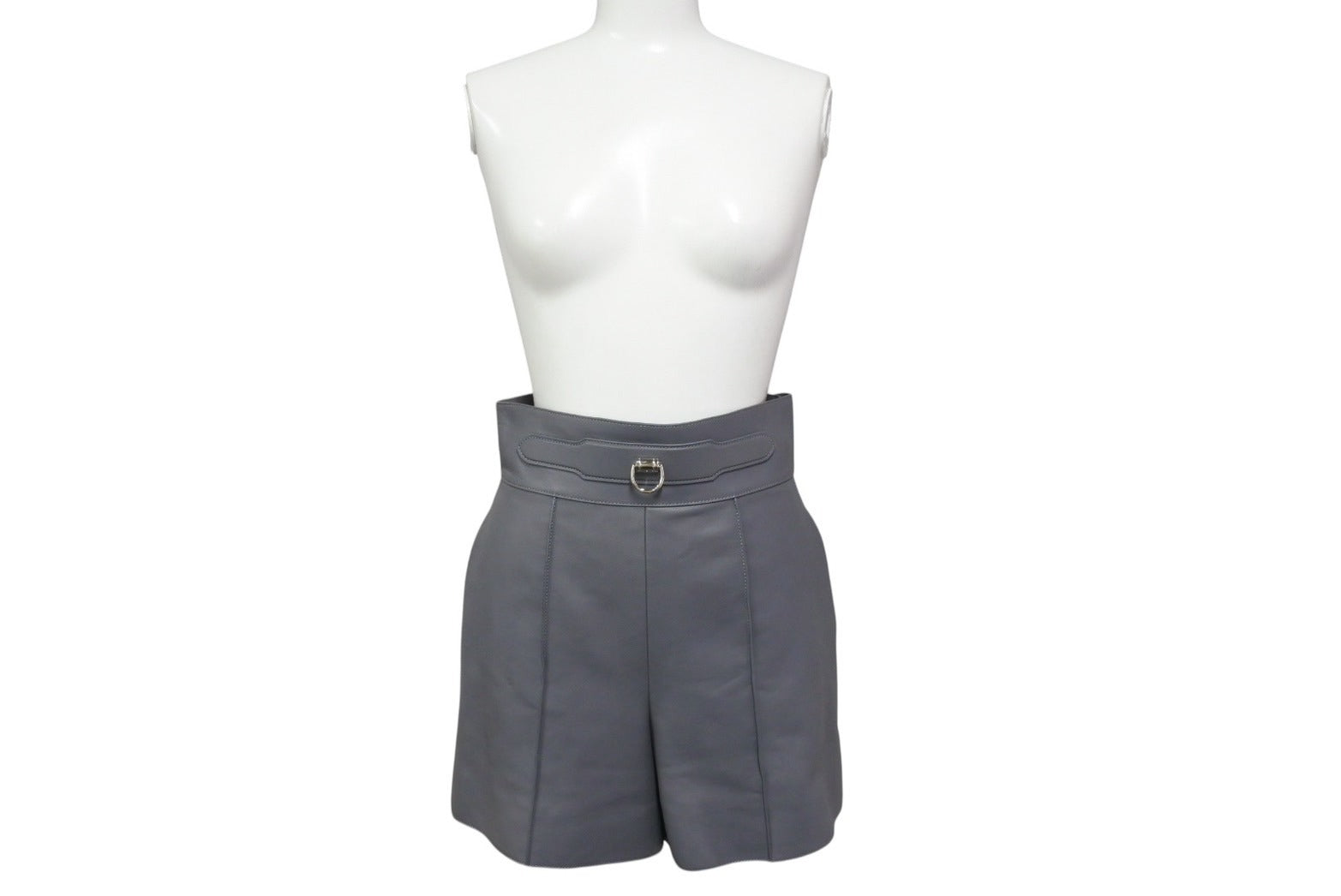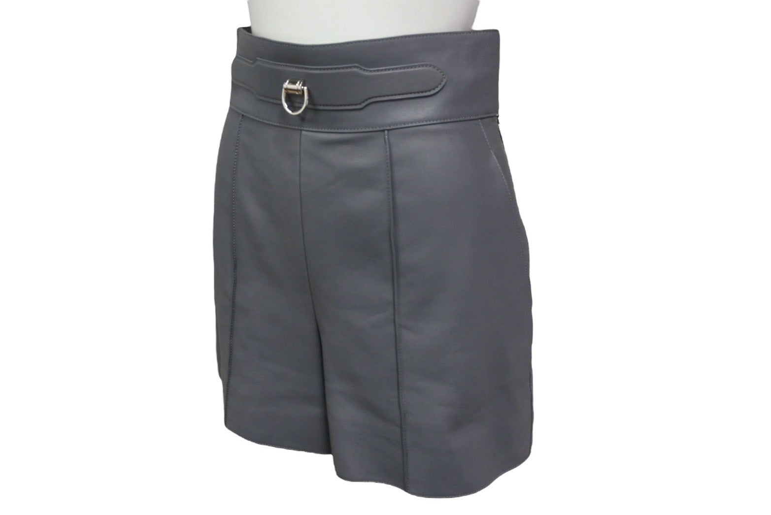 HERMES エルメス ショートパンツ ショーツ サイズ34 ラムレザー グレー 2021年 Dカン オールレザー 美品 中古 4b003292