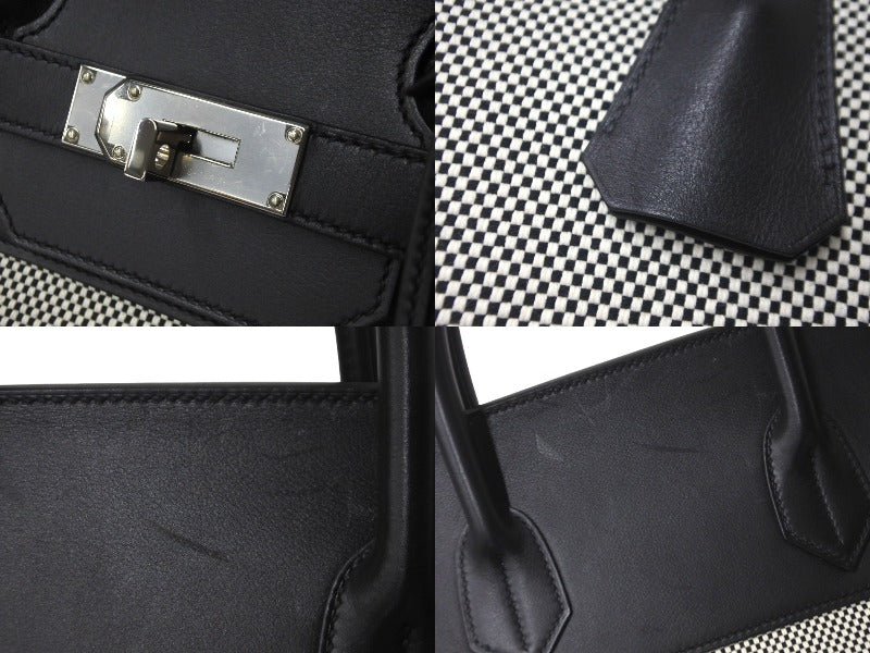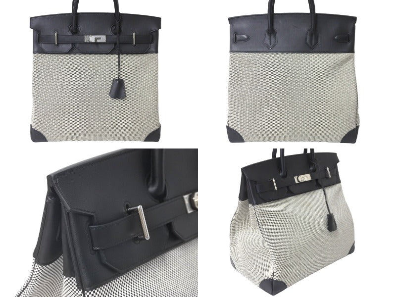 極美品 HERMES エルメス ハンドバッグ オータクロア40 Z刻印 ブラック トワル パラジウム金具 中古 60356