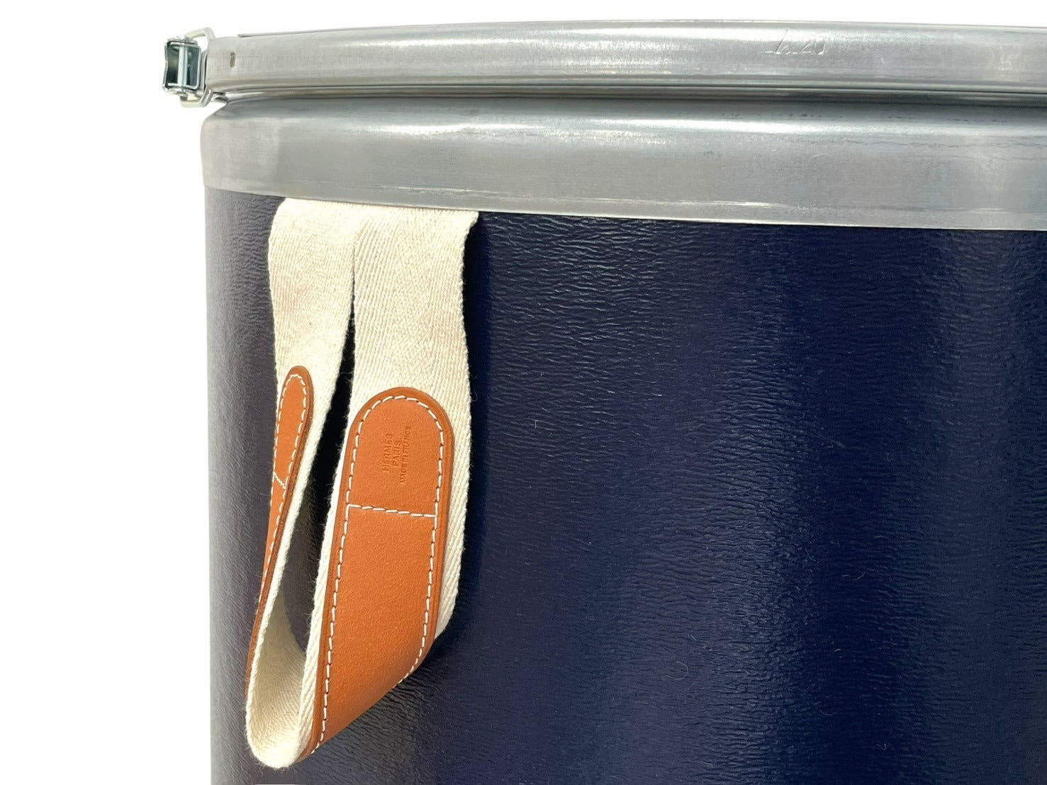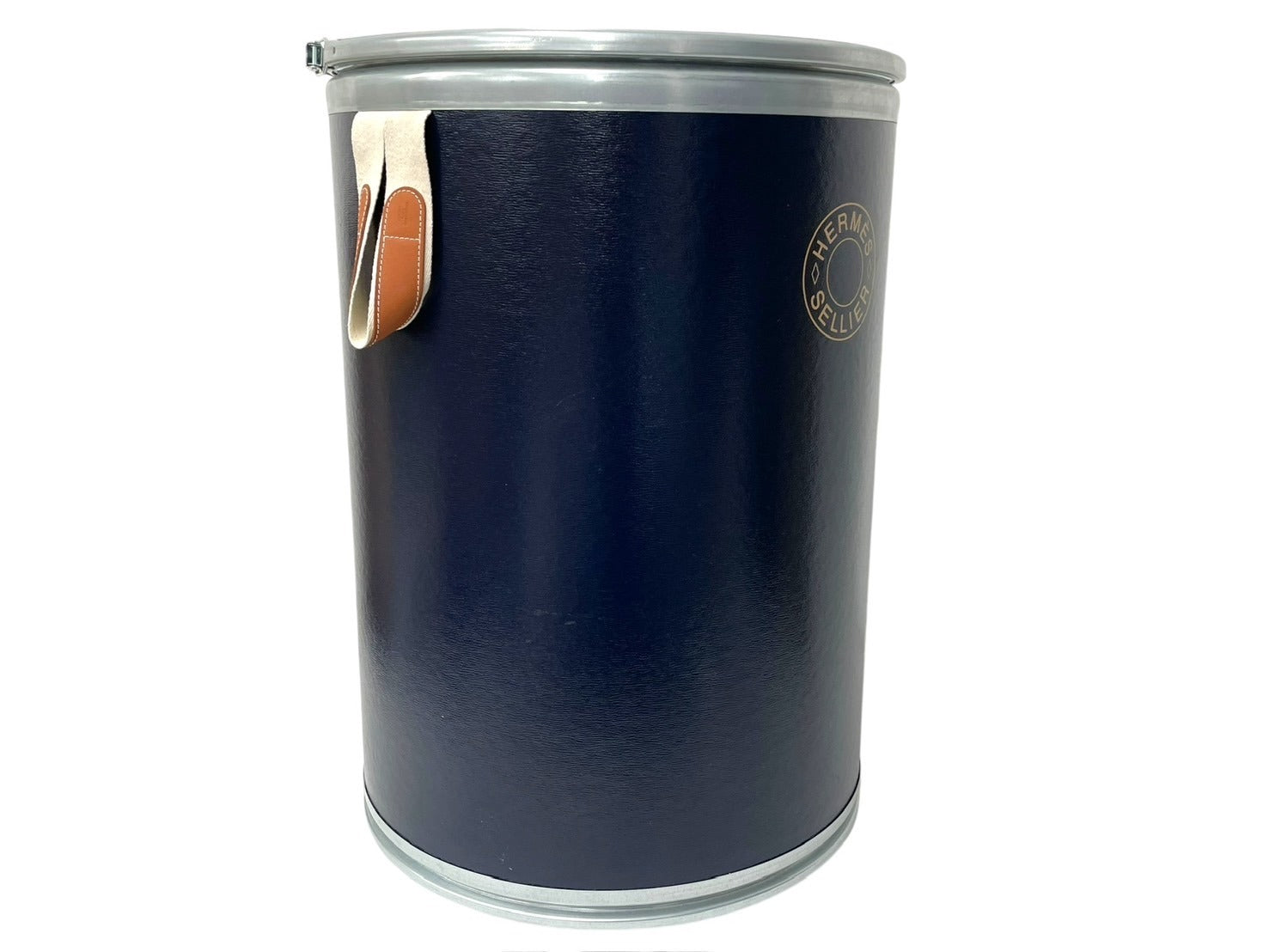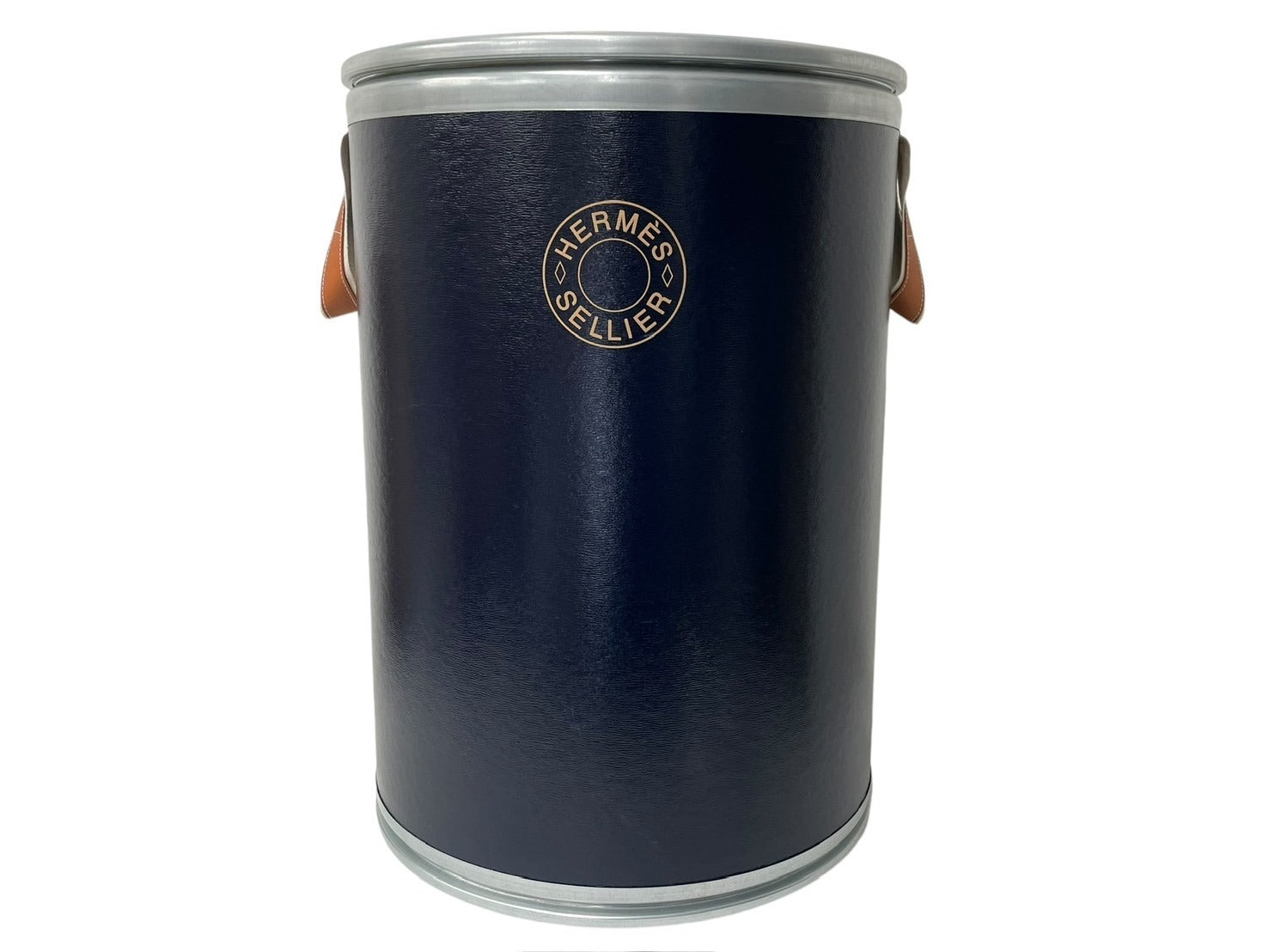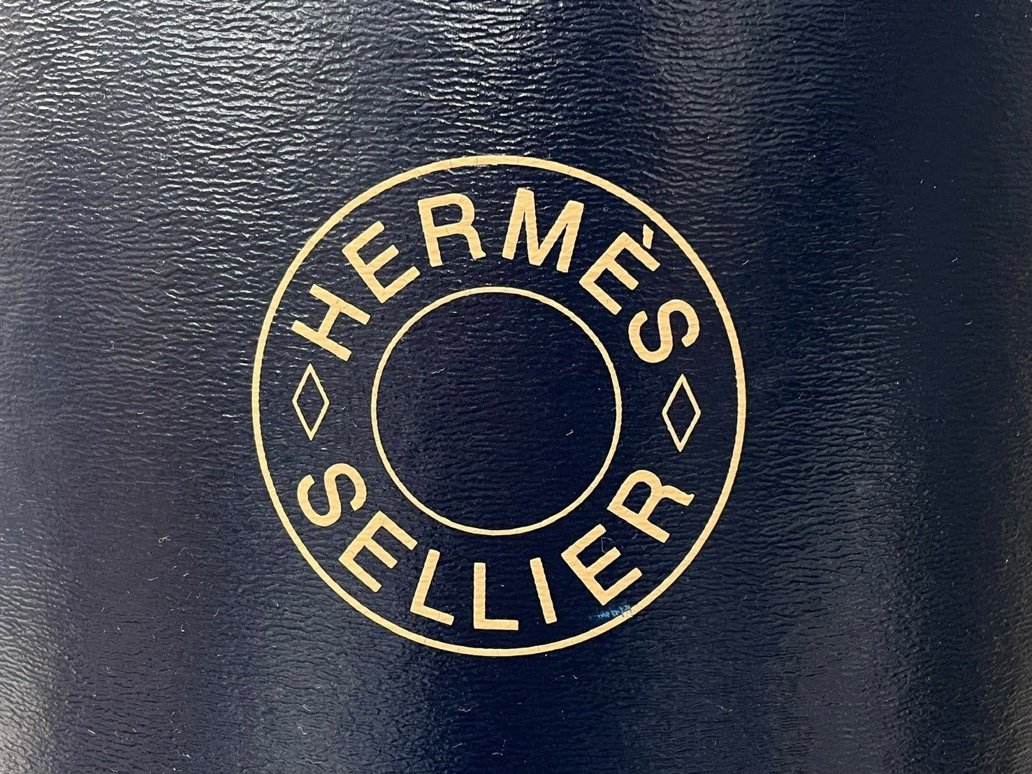 極美品 HERMES エルメス サドルボックス セリエライン ラージサイズ ネイビー シルバー インテリア 収納 置物 中古 4c068267