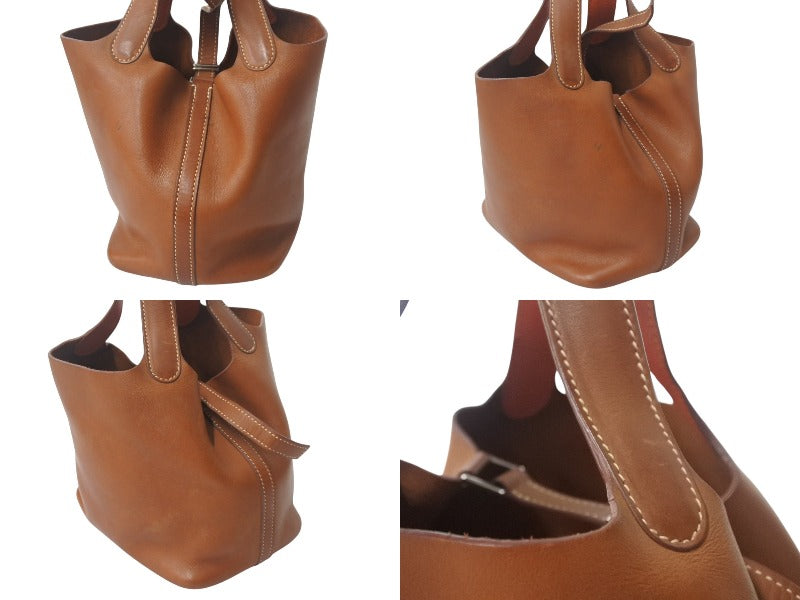 HERMES エルメス ハンドバッグ ピコタン PM □H刻印 バレニア オレンジ ゴールド シルバー金具 美品 中古 4c068333