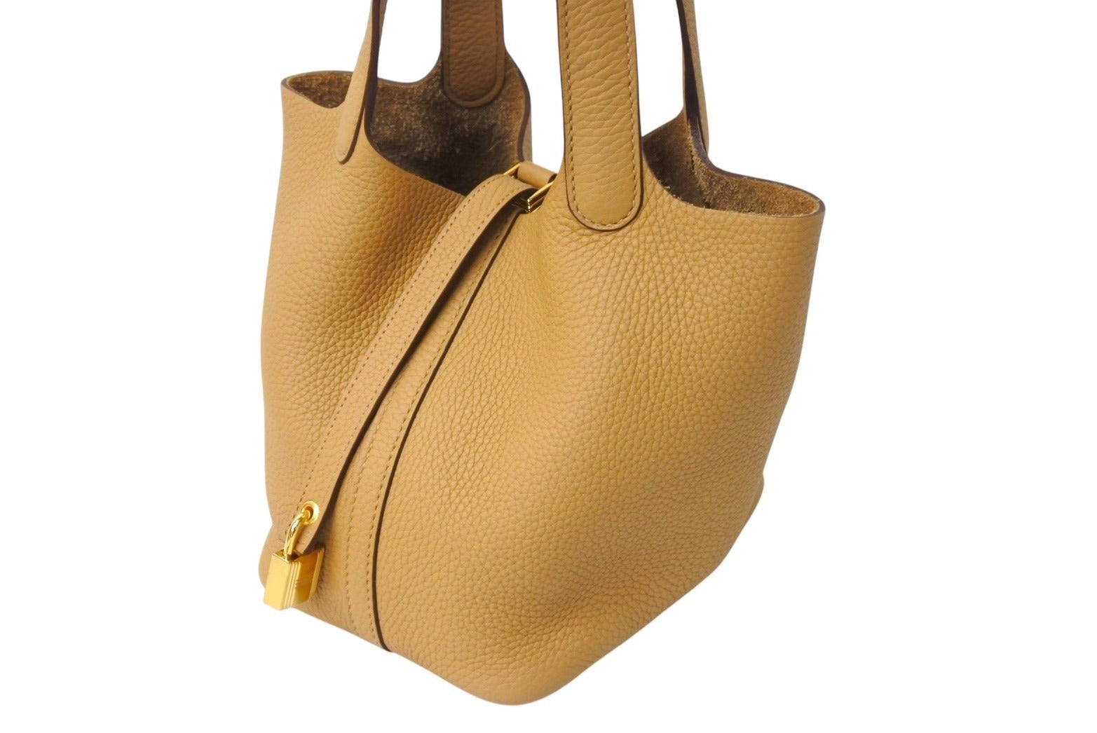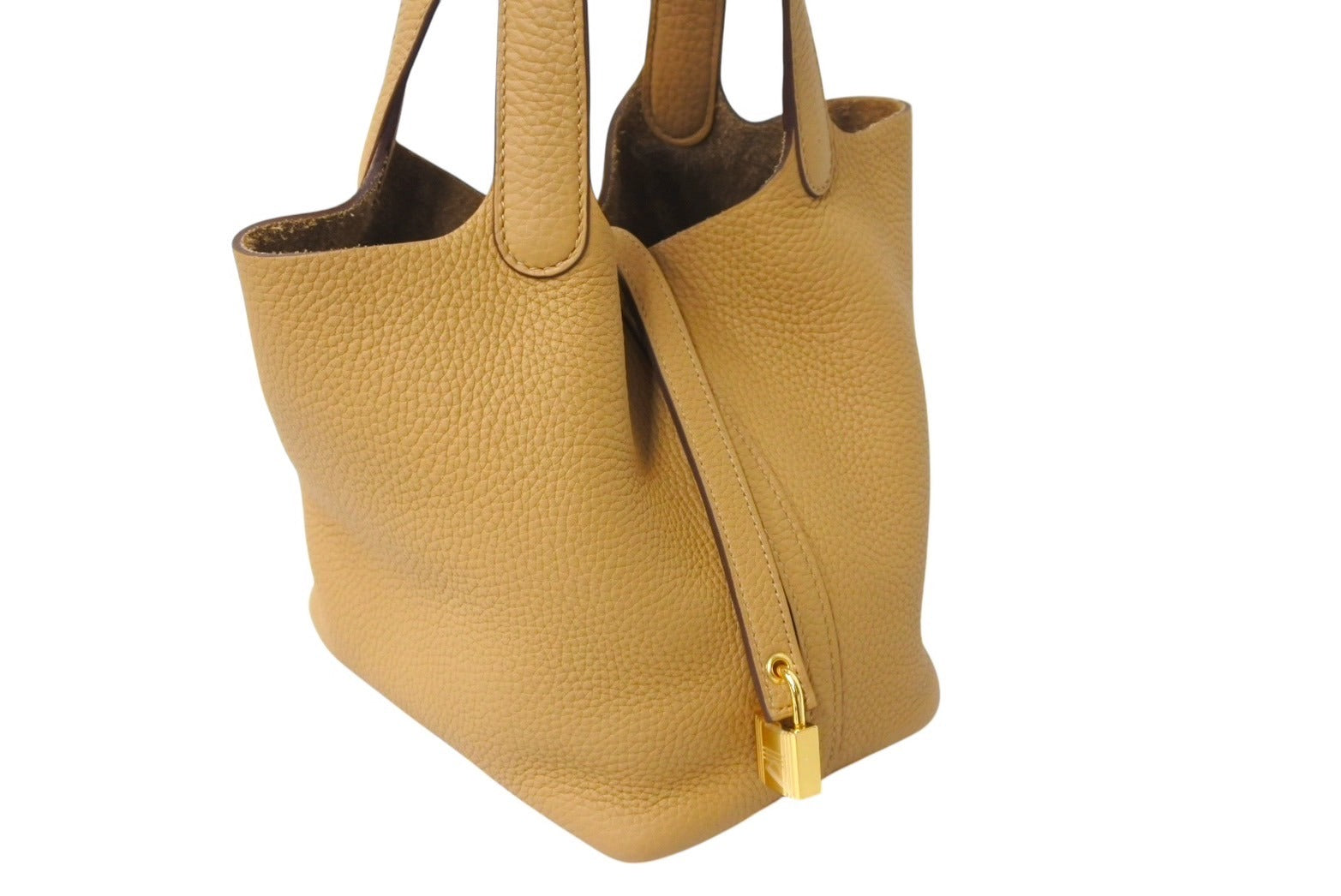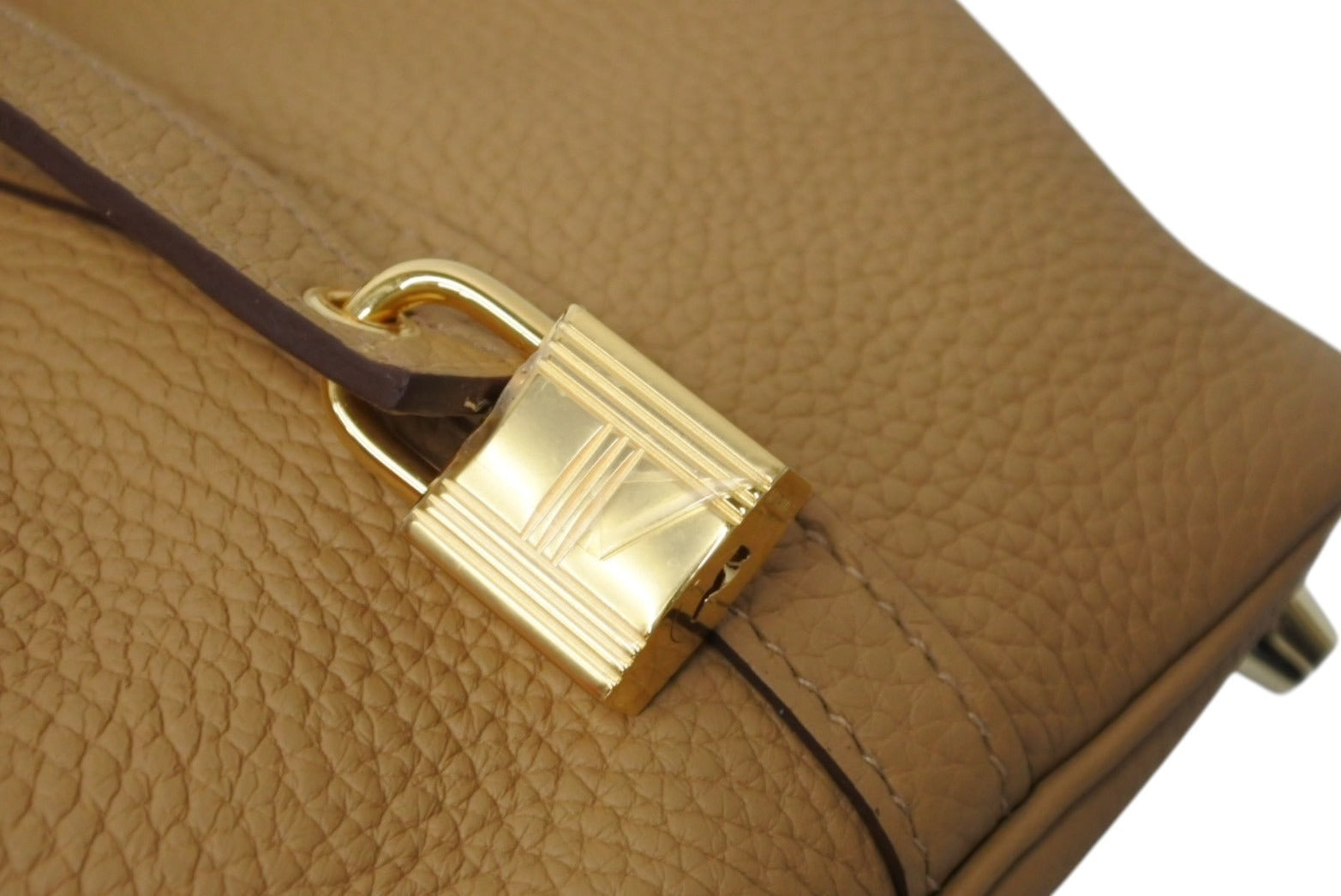 新品同様品 HERMES エルメス ピコタンロックPM D刻印 18 トリヨンクレマンス ビスキュイ シルバー金具 ハンドバッグ 中古 4c069536
