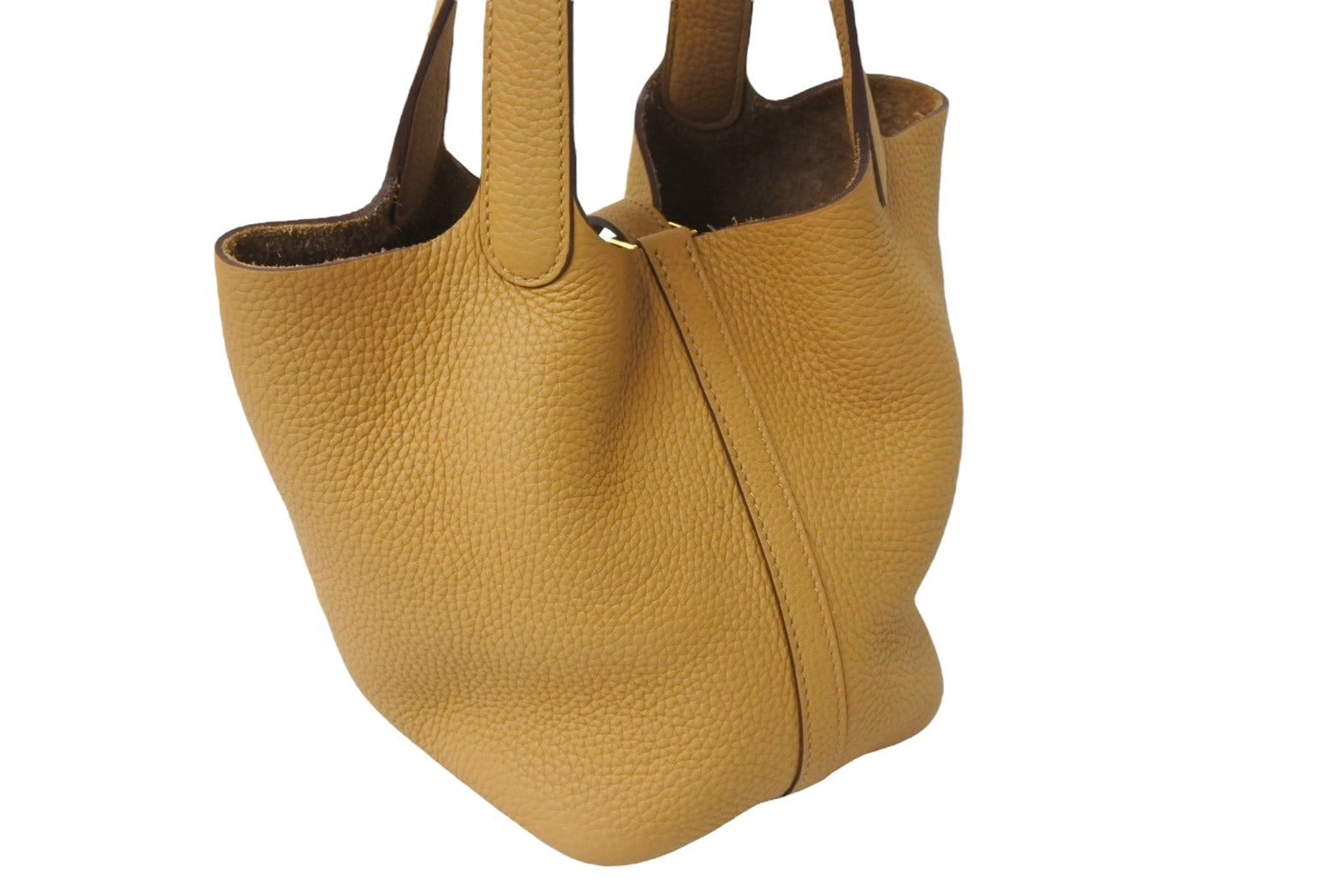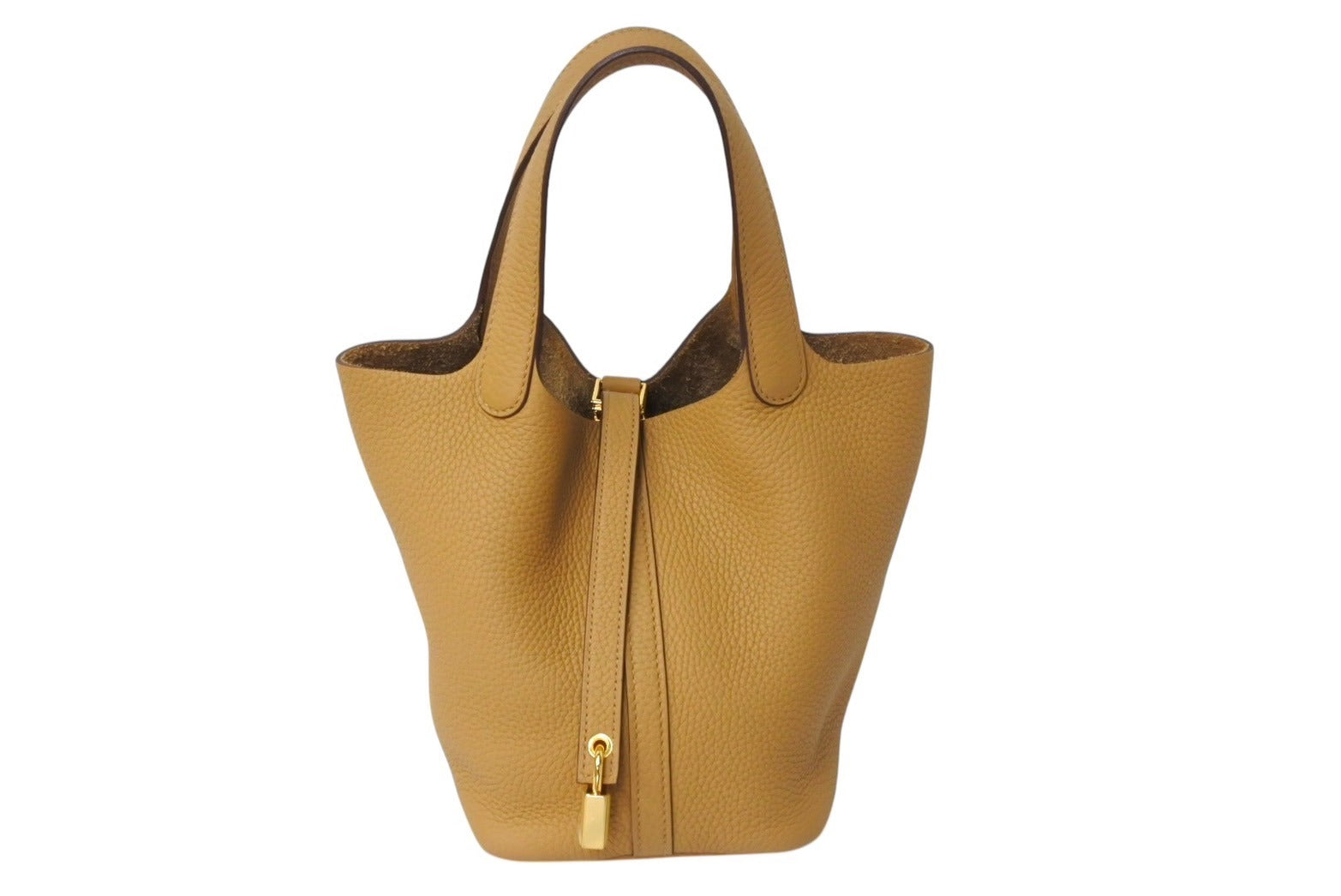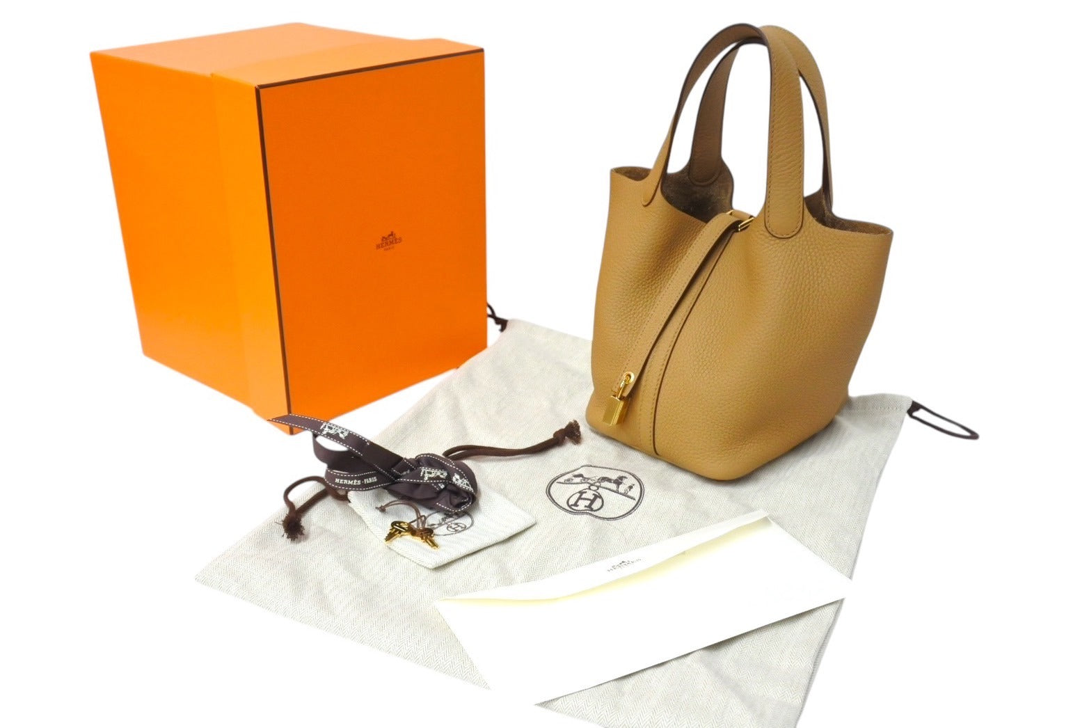 新品同様品 HERMES エルメス ピコタンロックPM D刻印 18 トリヨンクレマンス ビスキュイ シルバー金具 ハンドバッグ 中古 4c069536