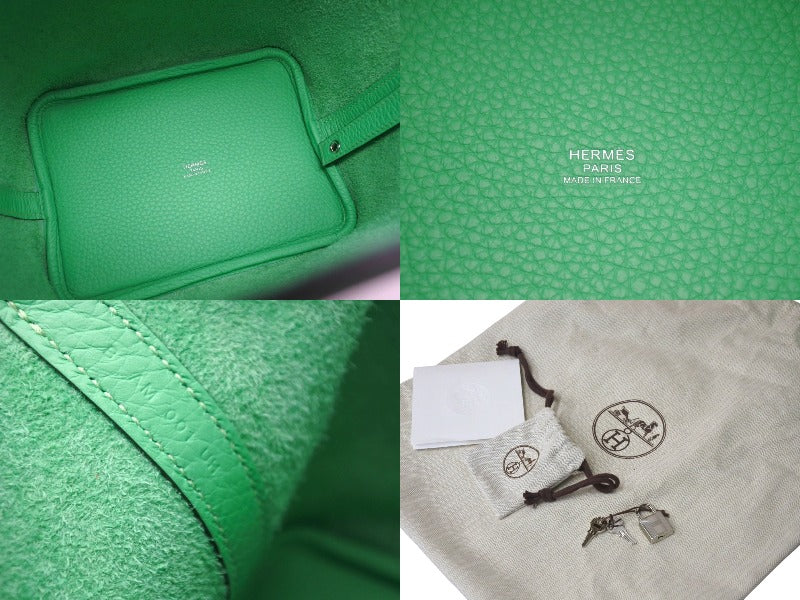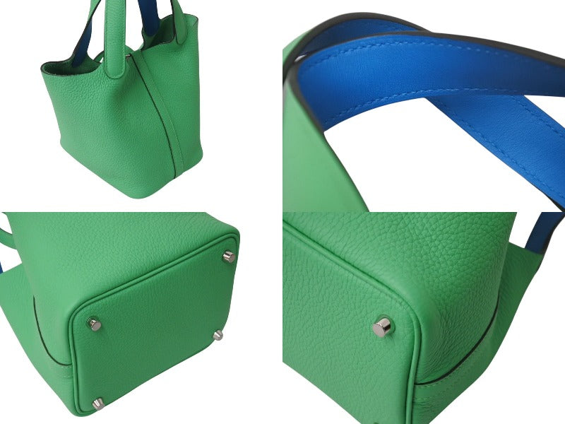 未使用 HERMES エルメス ハンドバッグ ピコタンロックPM トリヨンクレマンス ヴェールユッカ バイカラー B刻印 シルバー金具 中古 4c071398