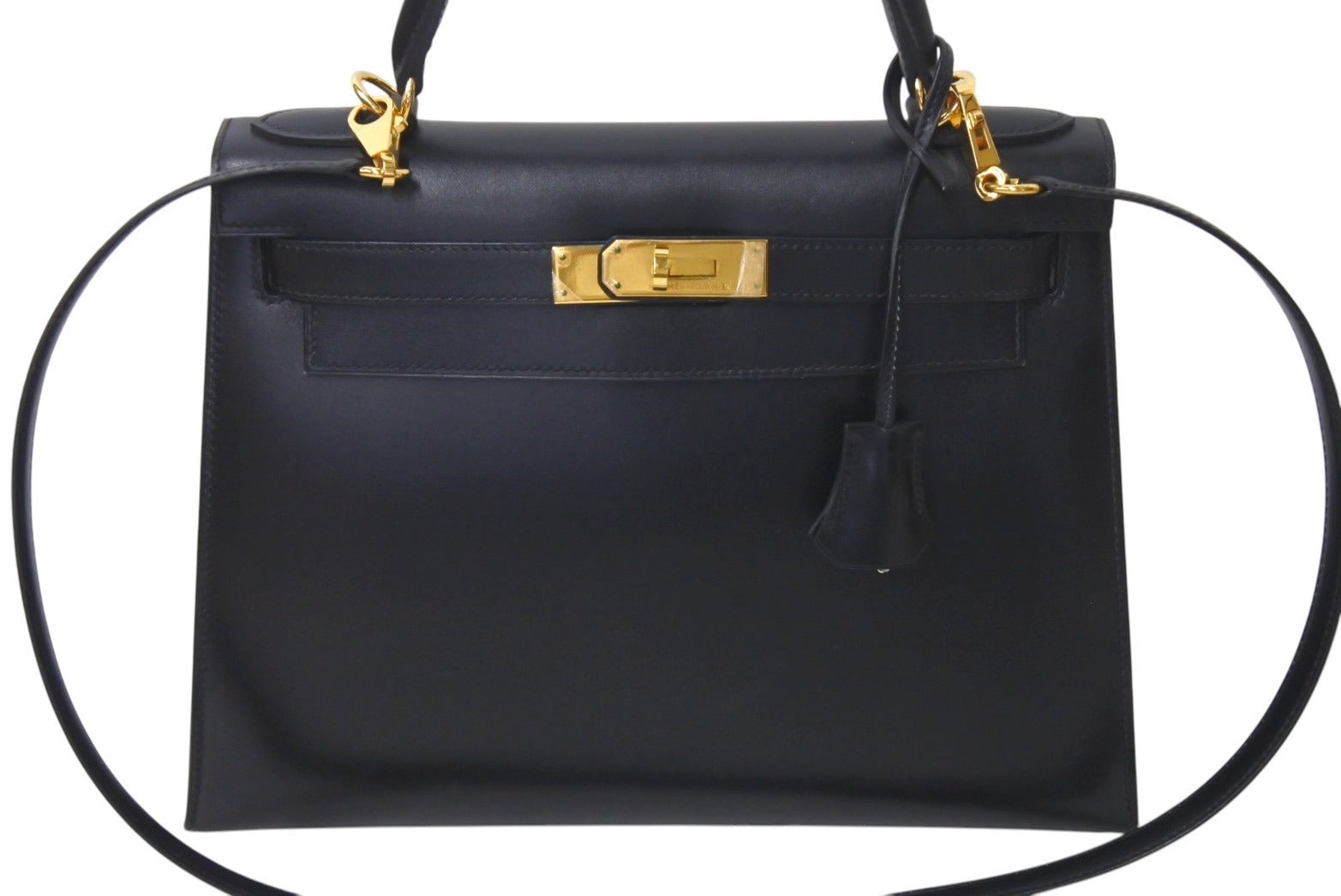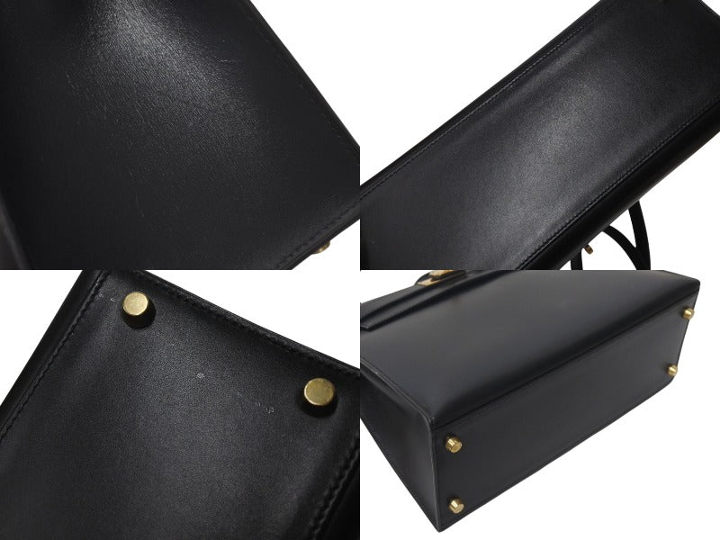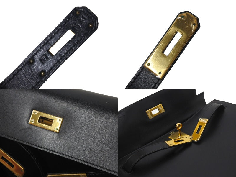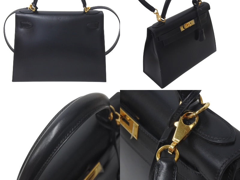 新品同様 HERMES エルメス ケリー28 外縫い ブラック ◻︎F刻印 カーフスキン ゴールド金具 V金具 ハンドバッグ 中古 4c073520