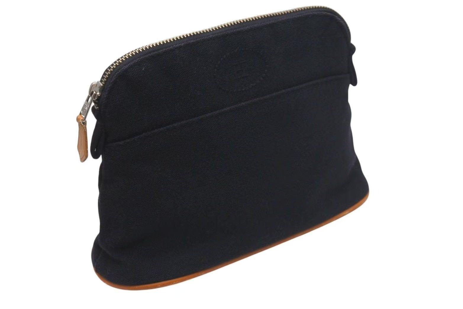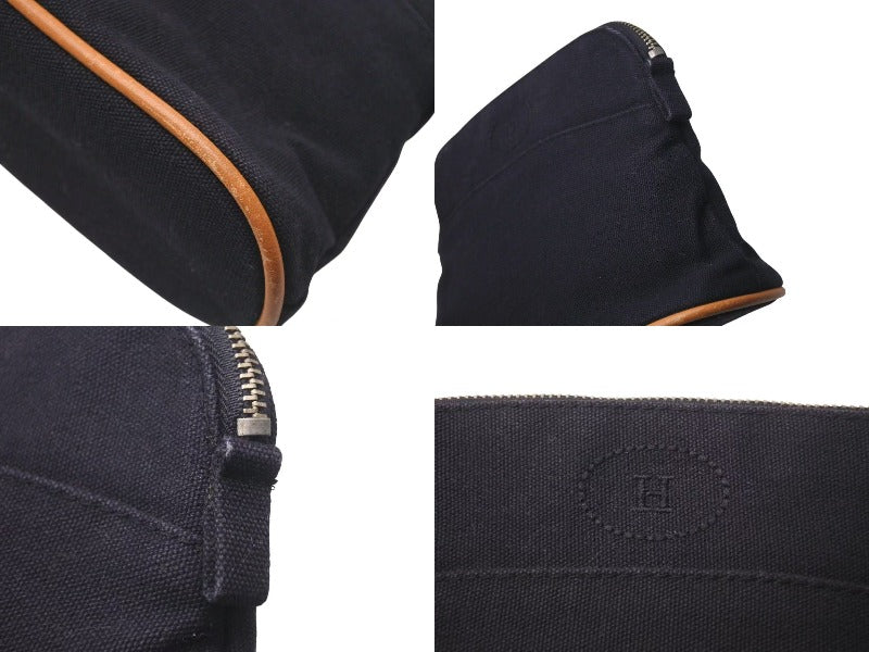 HERMES エルメス ポリードポーチ20 ハイビスカス コスメティックポーチ ブラック シルバー金具 美品 中古 4c073868