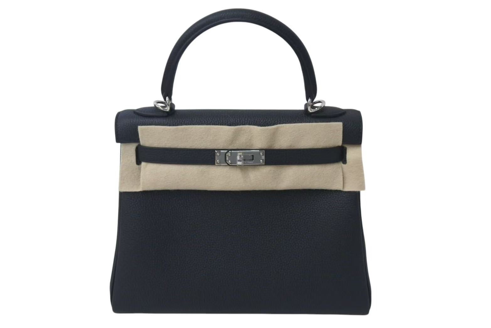 新品未使用 HERMES エルメス ケリー25 W刻印 2025年購入品 内縫い 黒 トゴ シルバー金具 中古 4c073870
