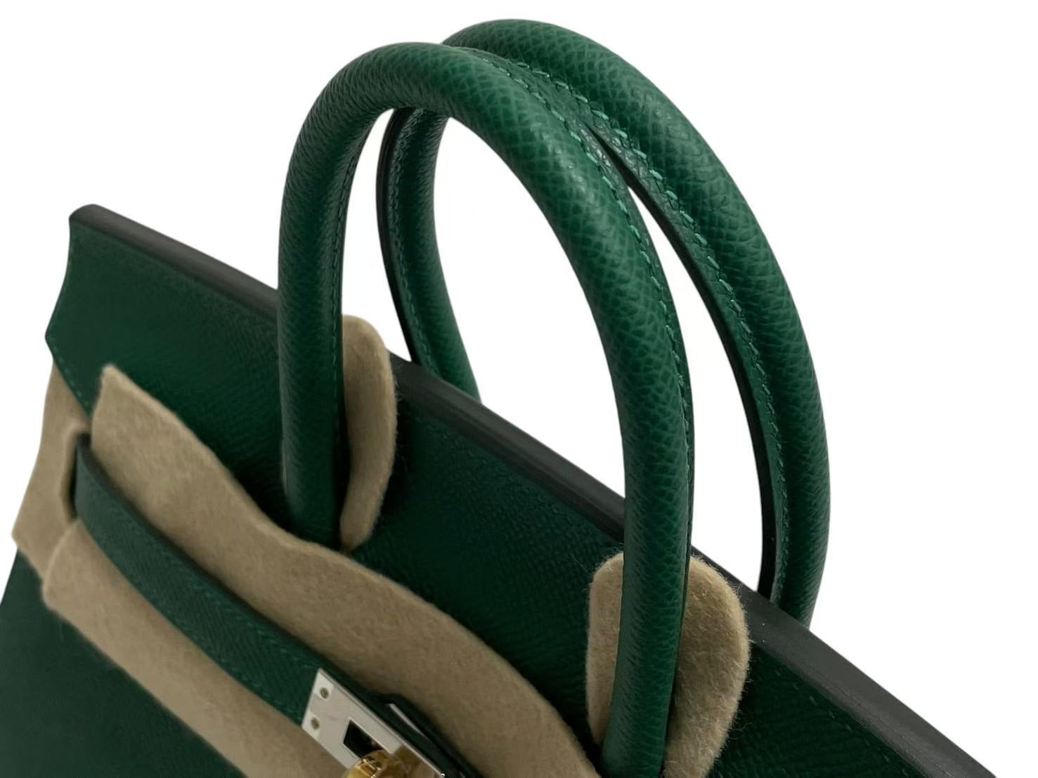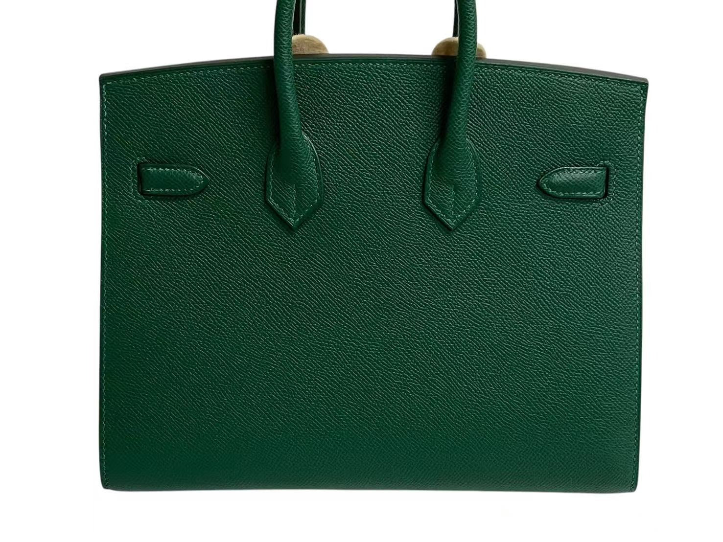 深みのある鮮やかなグリーンカラー「ヴェールモワイヤン」と、ゴールドとシルバーのコンビ金具が組み合わさった希少な商品です。