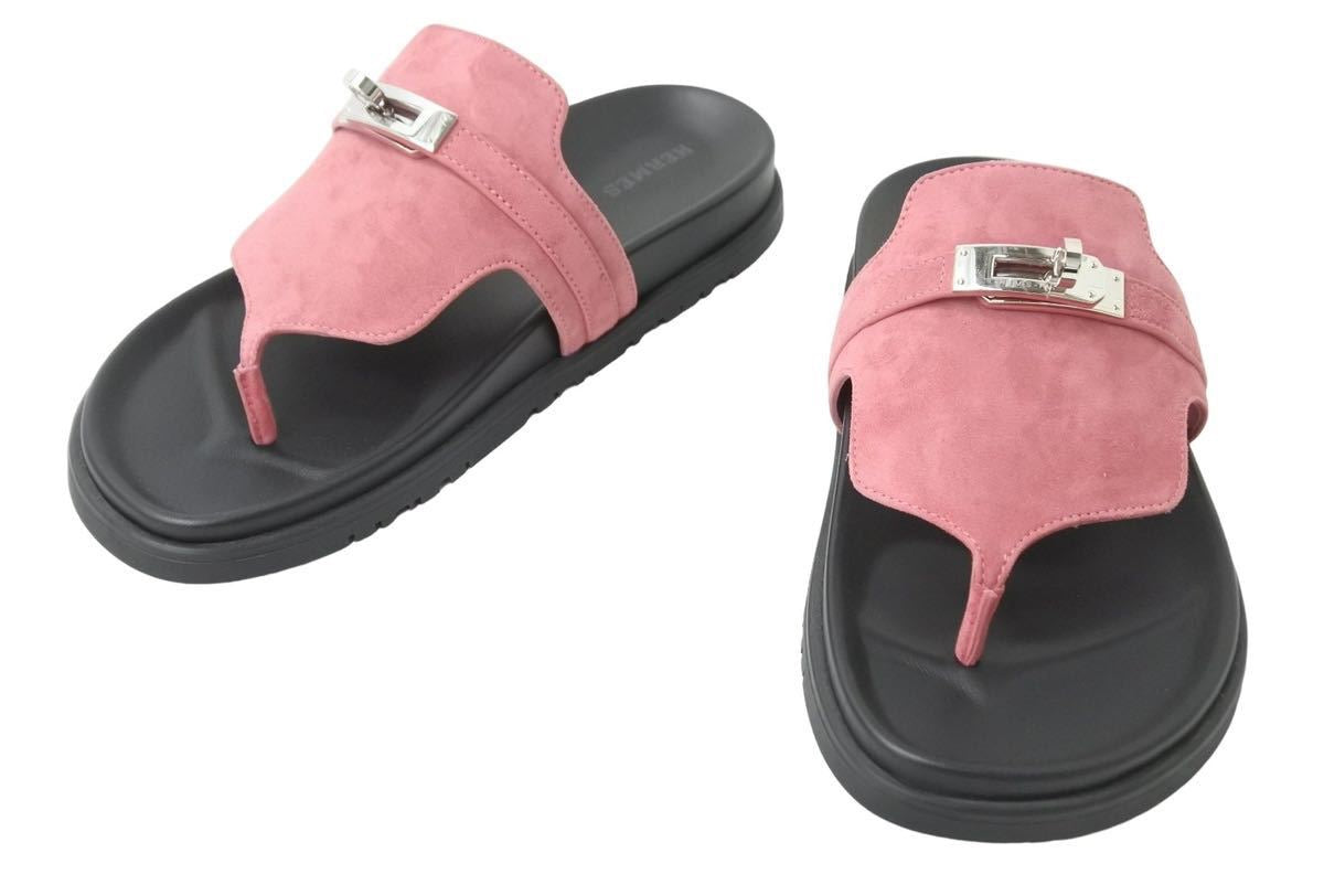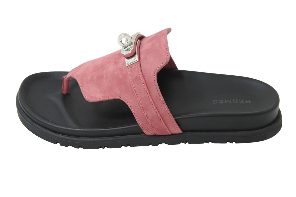 アナトミカルなソールとアイコニックなパーマブラスプレートのケリーバックルを備えたスエードゴートスキンのテクノサンダルです。
