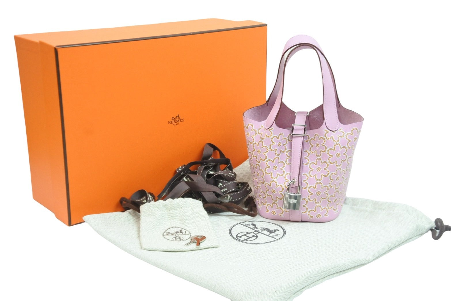 新品未使用品 HERMES エルメス ハンドバッグ マイクロピコタン ラッキーデイジー U刻印 ヴォースイフト 牛皮 ピンク 中古 51707