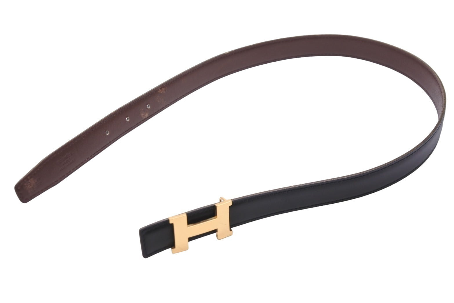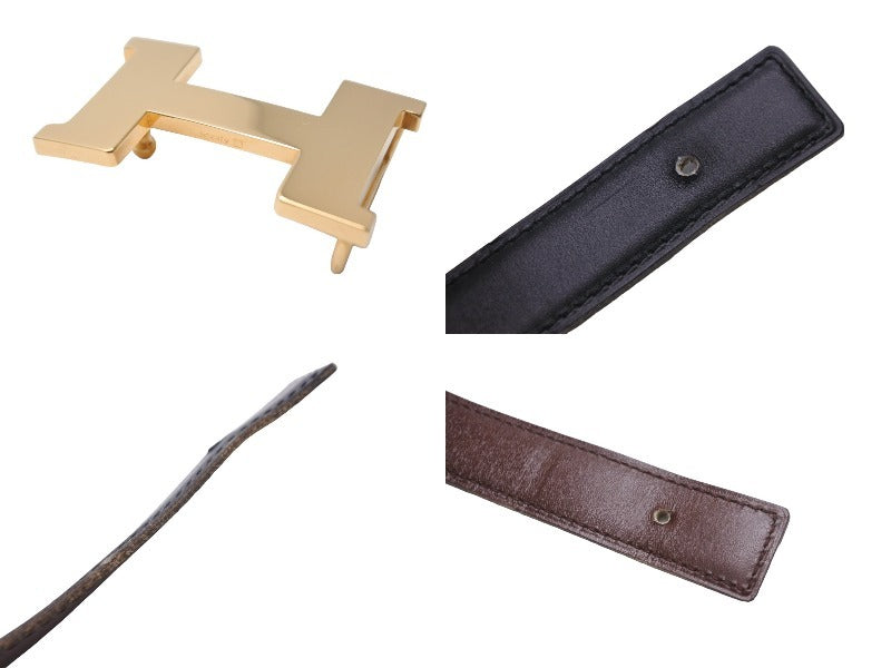 HERMES エルメス ベルト H バックル □D刻印 ボックスカーフ ナロー レザー 65 ブラック ブラウン ゴールド金具 美品 中古 54434
