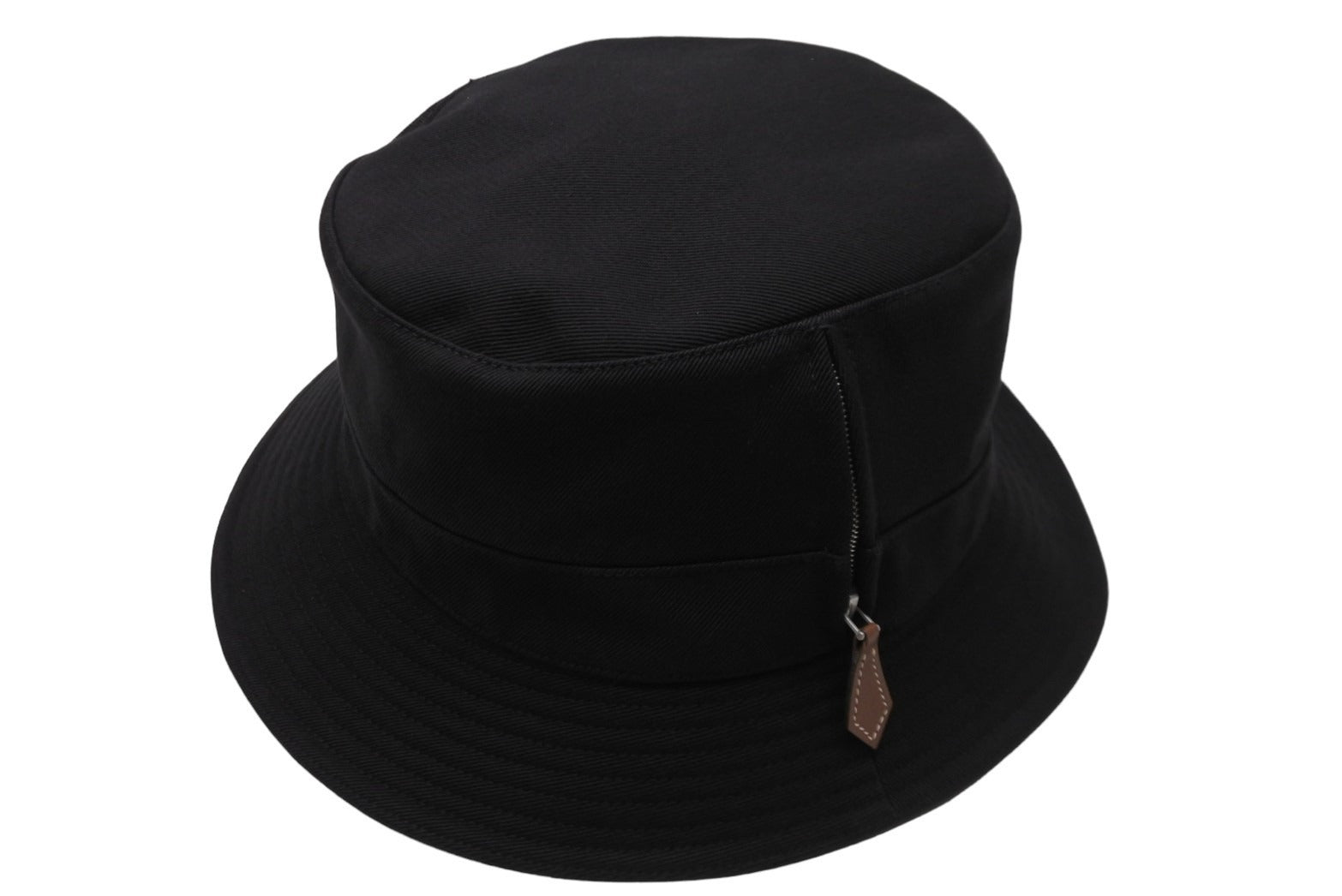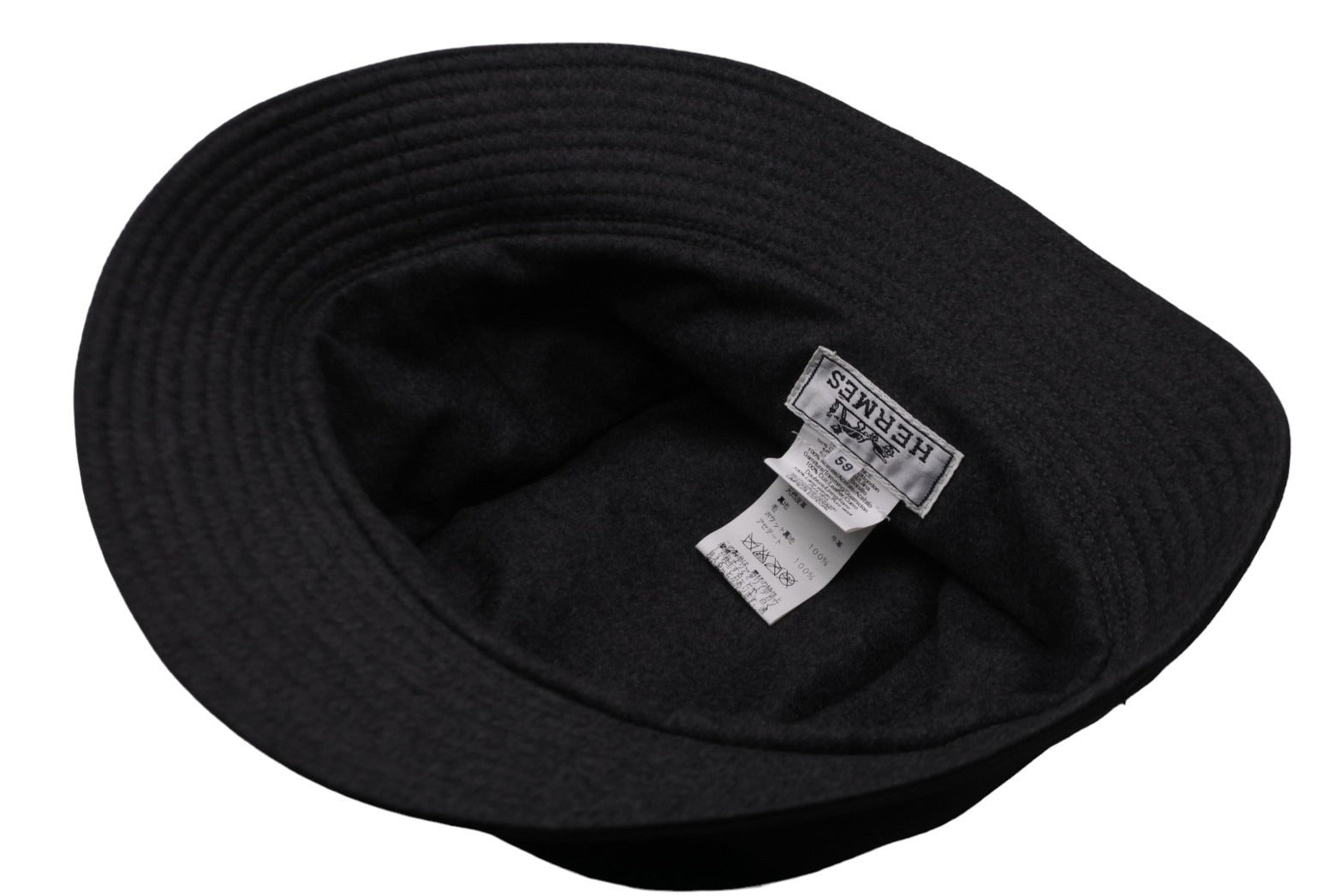 極美品 HERMES エルメス 帽子 ハット バケット ブラック コットン 毛 サイズ59 シルバー金具 中古 54471