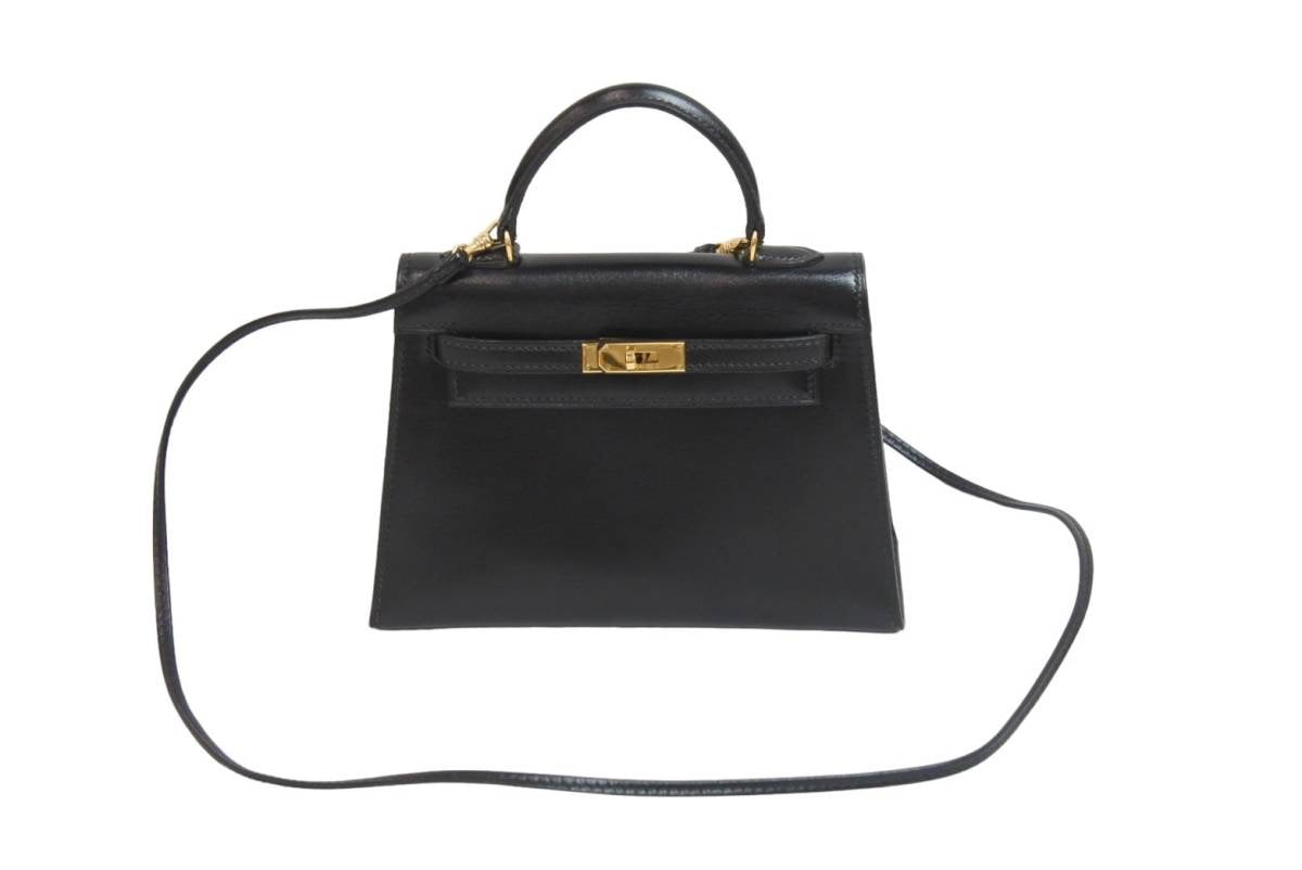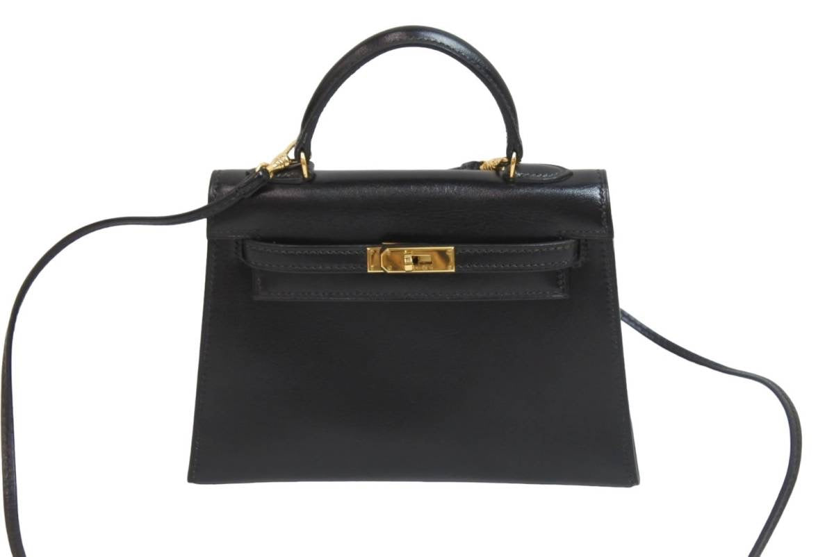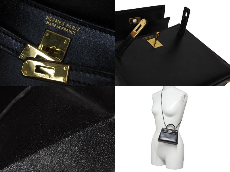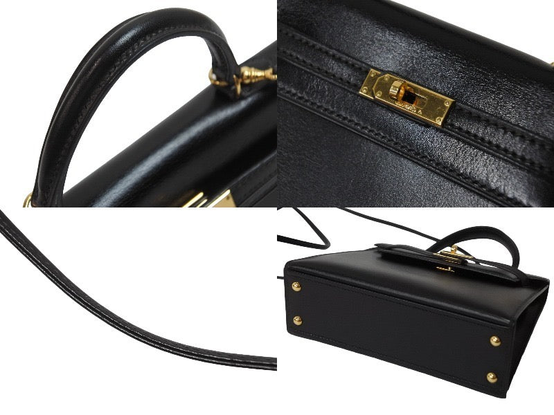 極美品 エルメス HERMES ミニミニ ケリー 15 黒 ブラック ゴールド金具 ボックスカーフ 外縫 2WAY ショルダーバッグ 中古 54853