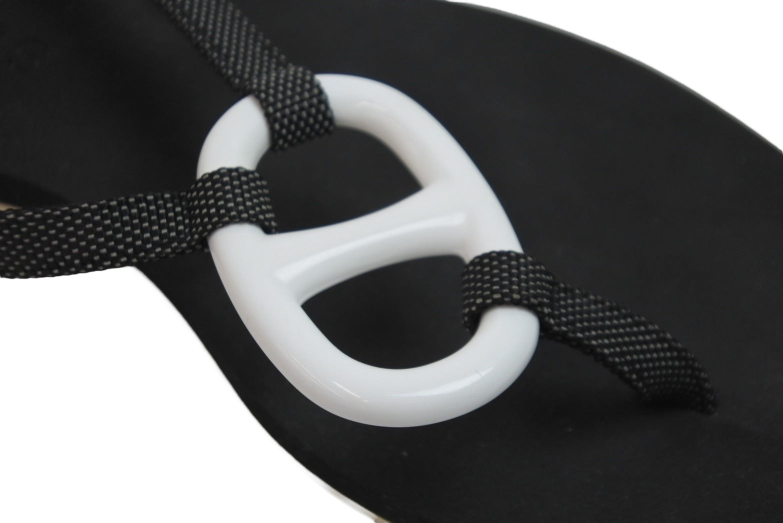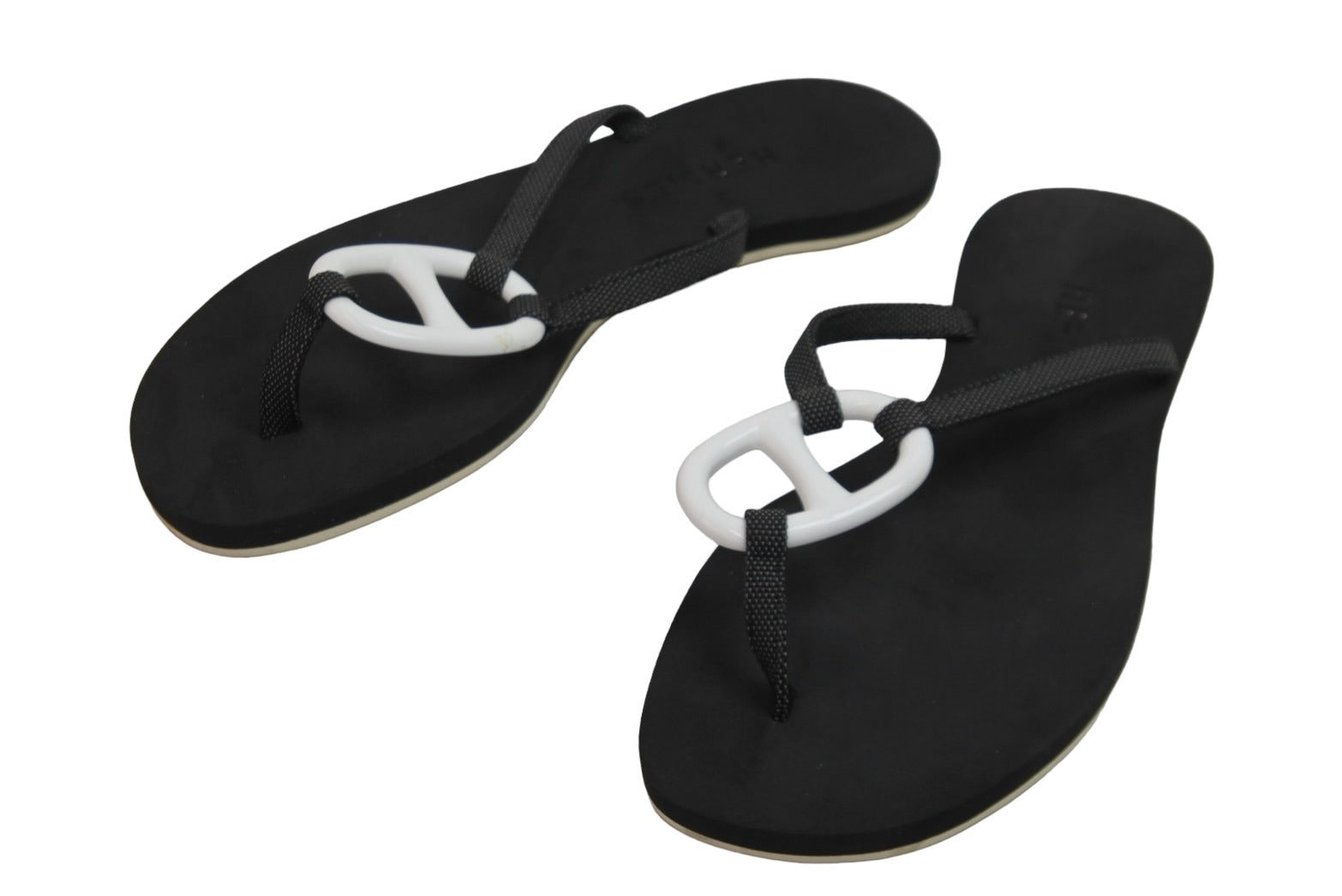 HERMES エルメス サンダル ビーチサンダル カラネラ シェーヌダンクル ラバー レディース ブラック 美品 中古 56220