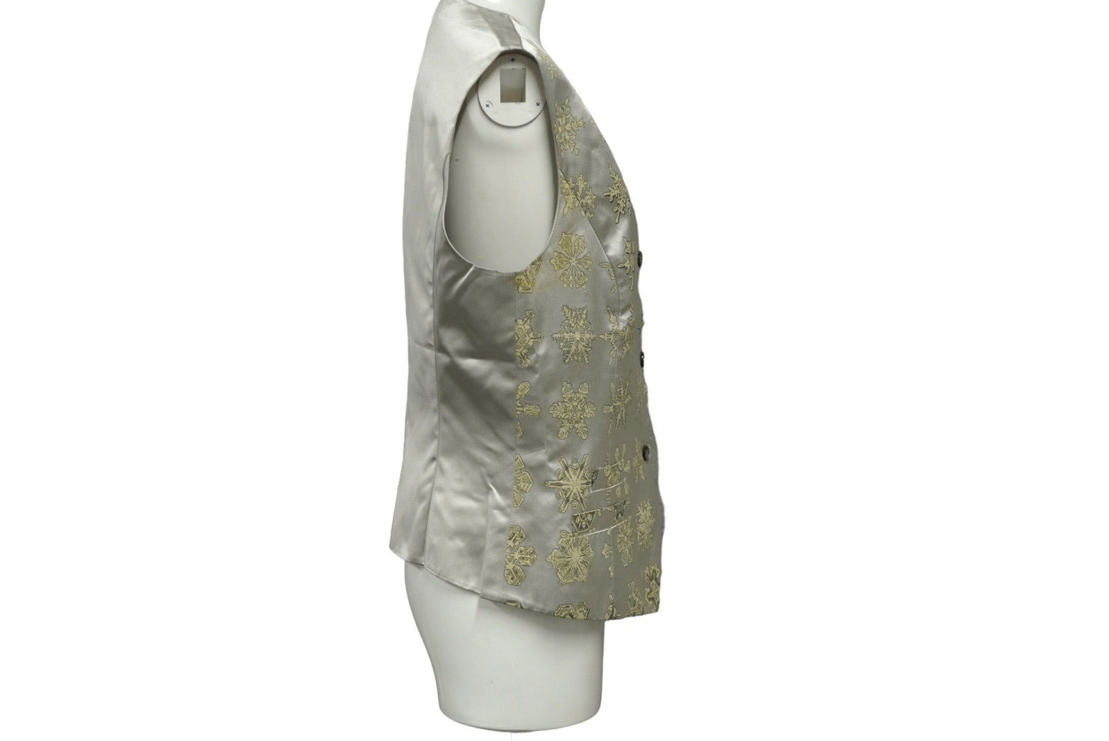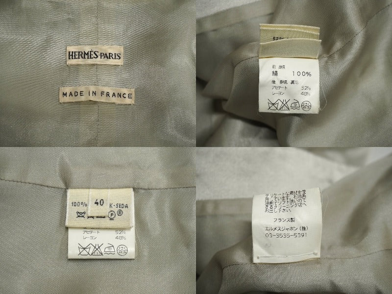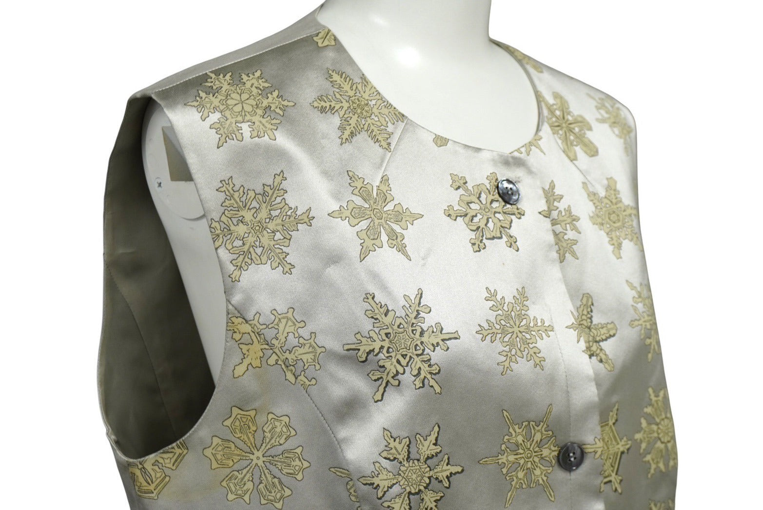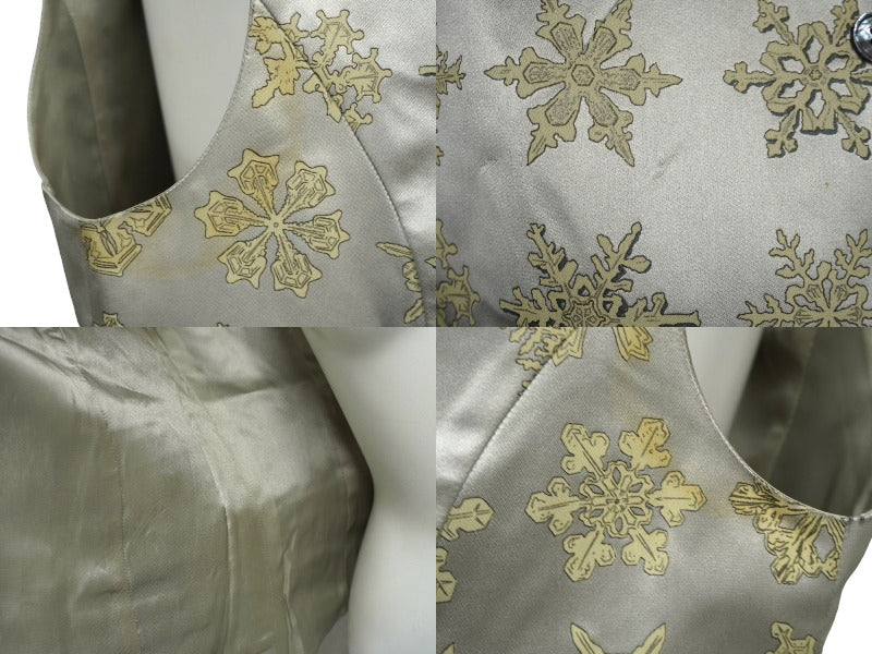 HERMES エルメス マルジェラ期 シルク ベスト 雪 結晶 グレー系 ベージュ ジレ 柄 アウター サイズ40 良品 中古 61543