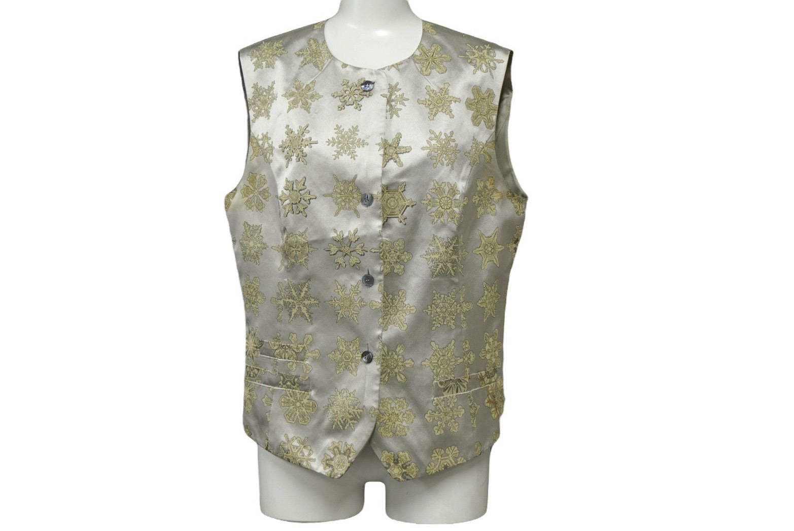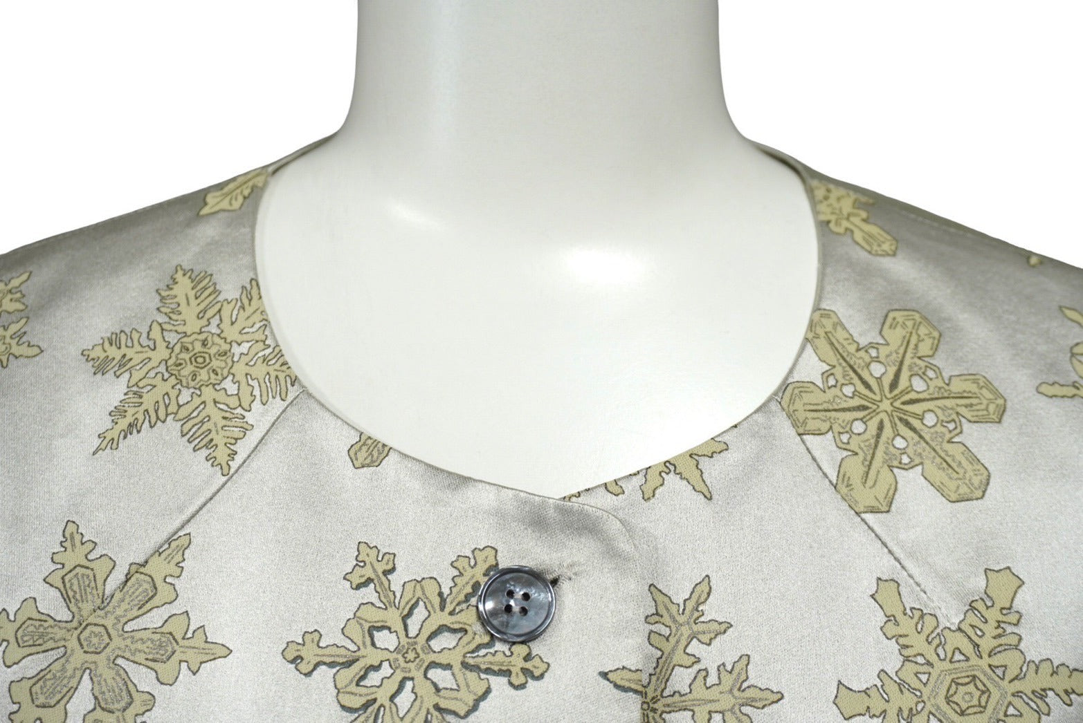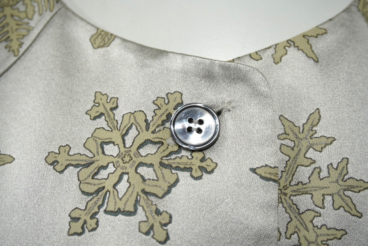 HERMES エルメス マルジェラ期 シルク ベスト 雪 結晶 グレー系 ベージュ ジレ 柄 アウター サイズ40 良品 中古 61543