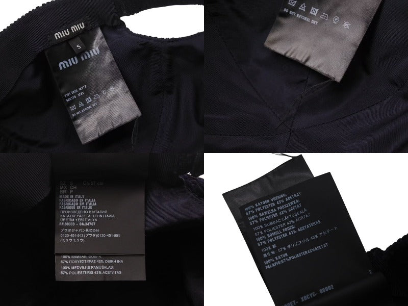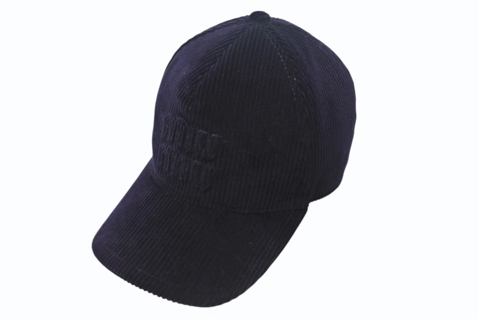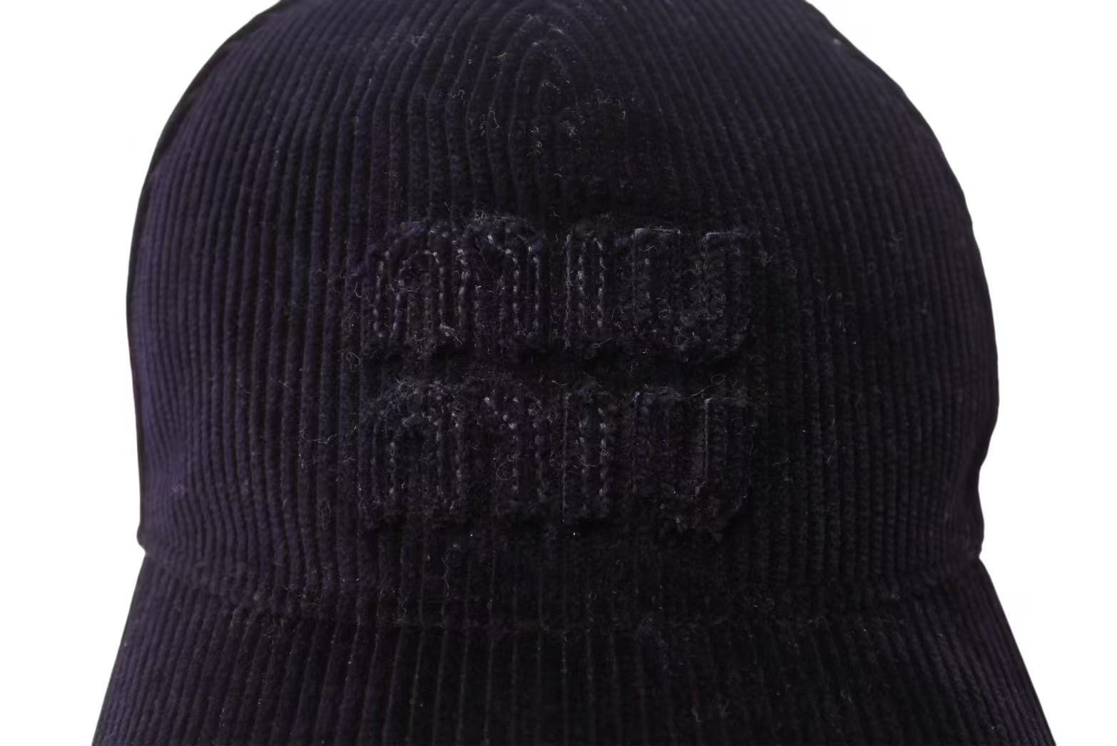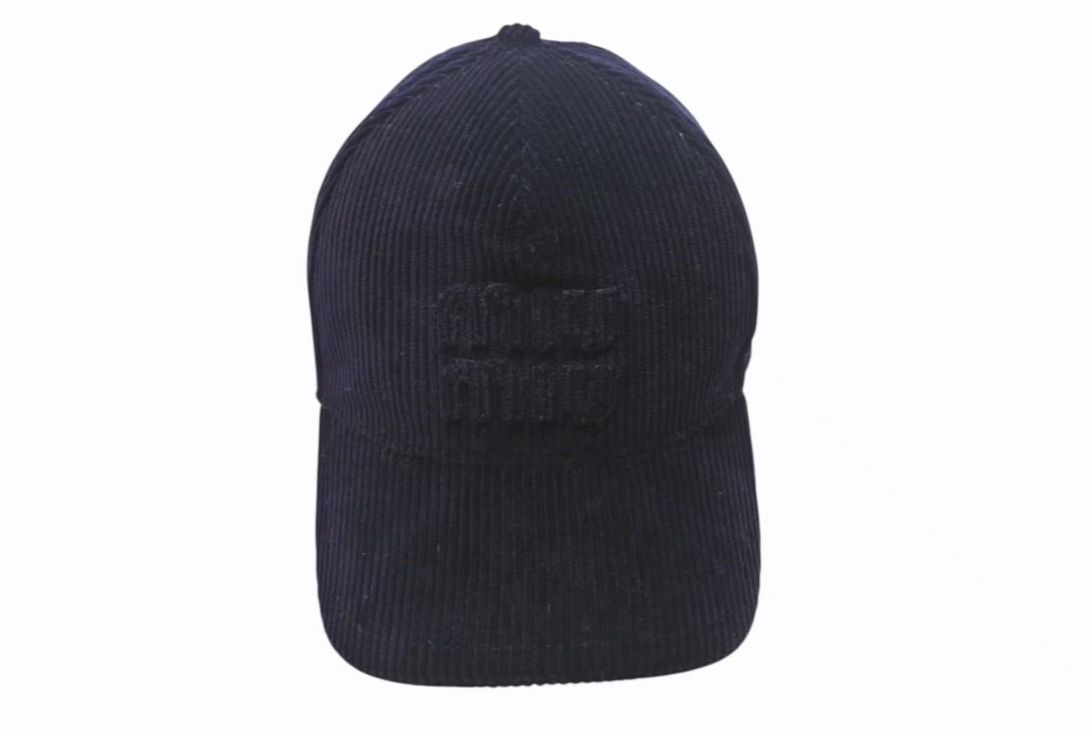 MIUMIU ミュウミュウ コ―デュロイ ロゴ ベースボール キャップ ネイビー コットン 5HC179 帽子 小物 サイズS 美品 中古 4b001476
